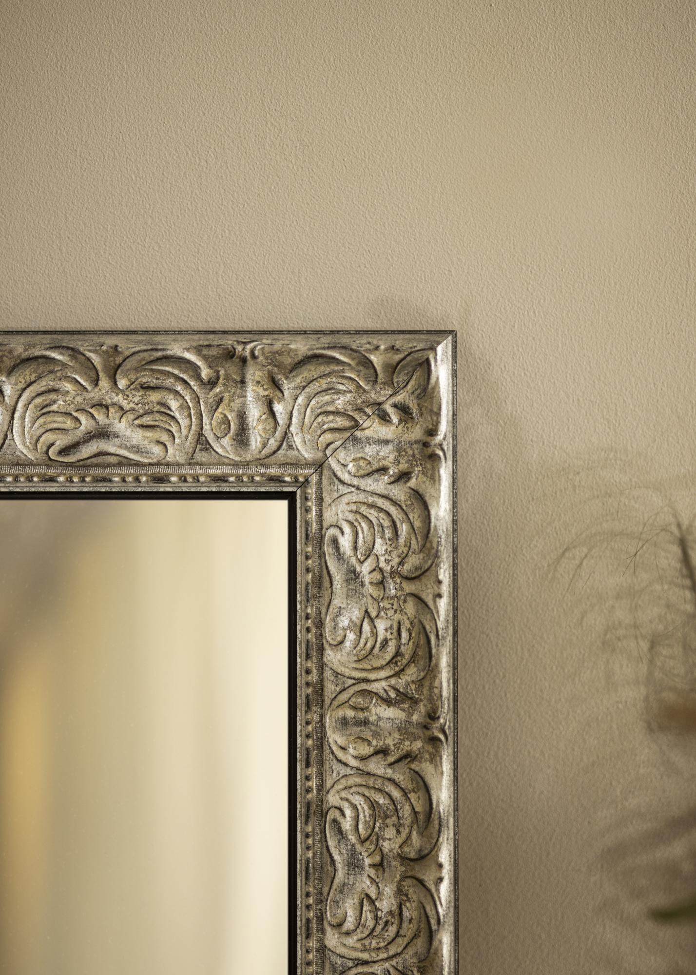 Mirror Durham Silver is a custom-made mirror manufactured by us to fit your specific needs. With its silver-colored frame and antique finish, it becomes a stylish element in any room. The ornamental relief on the frame gives the mirror a unique character and contributes to a rustic yet elegant feel.