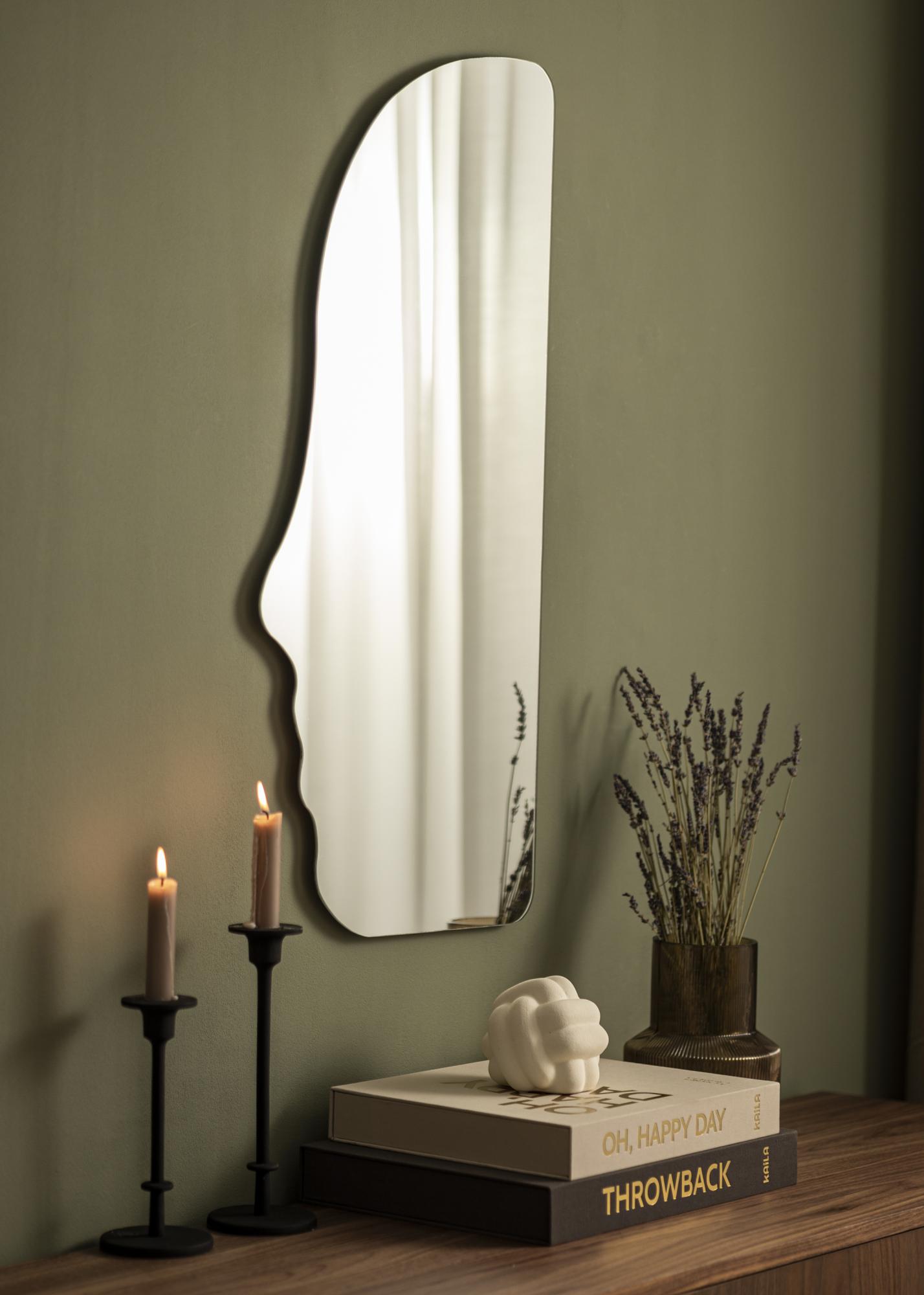 The mirror's dimensions of 40 x 80 cm make it a practical size for most walls, while still maintaining its presence and becoming a focal point. Its unique shape adds a playful touch and can serve as an interesting contrast against more traditional lines in the rest of the room's decor.