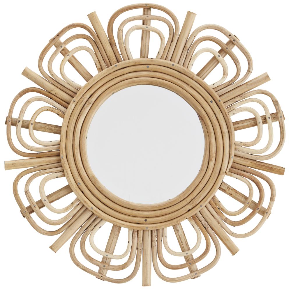 This fantastic mirror from Madam Stoltz will add an eye-catching detail to your home. The artistic design is inspired by flowers, and is finished with a fine frame in bamboo creating an artistic piece. The wall mirror has a diameter of 45 cm. The mirror is made with natural materials and each item can vary slightly in appearance as a result.