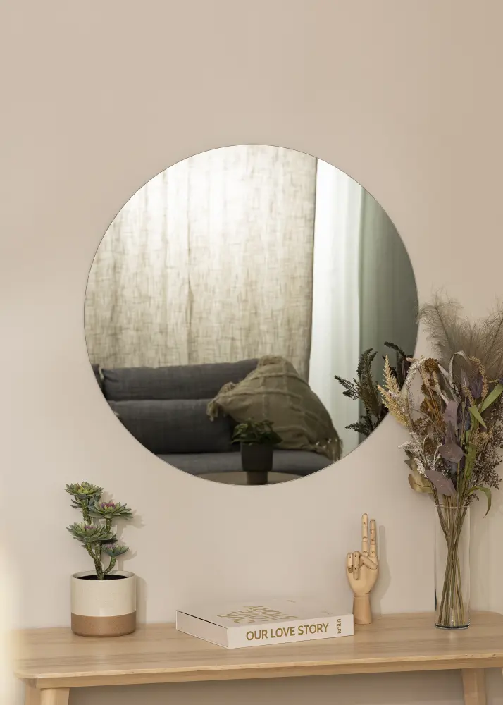 Do you want a sophisticated yet subtle wall mirror? This round wall mirror comes with tinted grey mirror glass and an elegant frameless design. The tinted glass gives it a slightly darker appearance while the mirror continues to reflect light to brighten up the room. The mirror has a diameter of 80 cm.