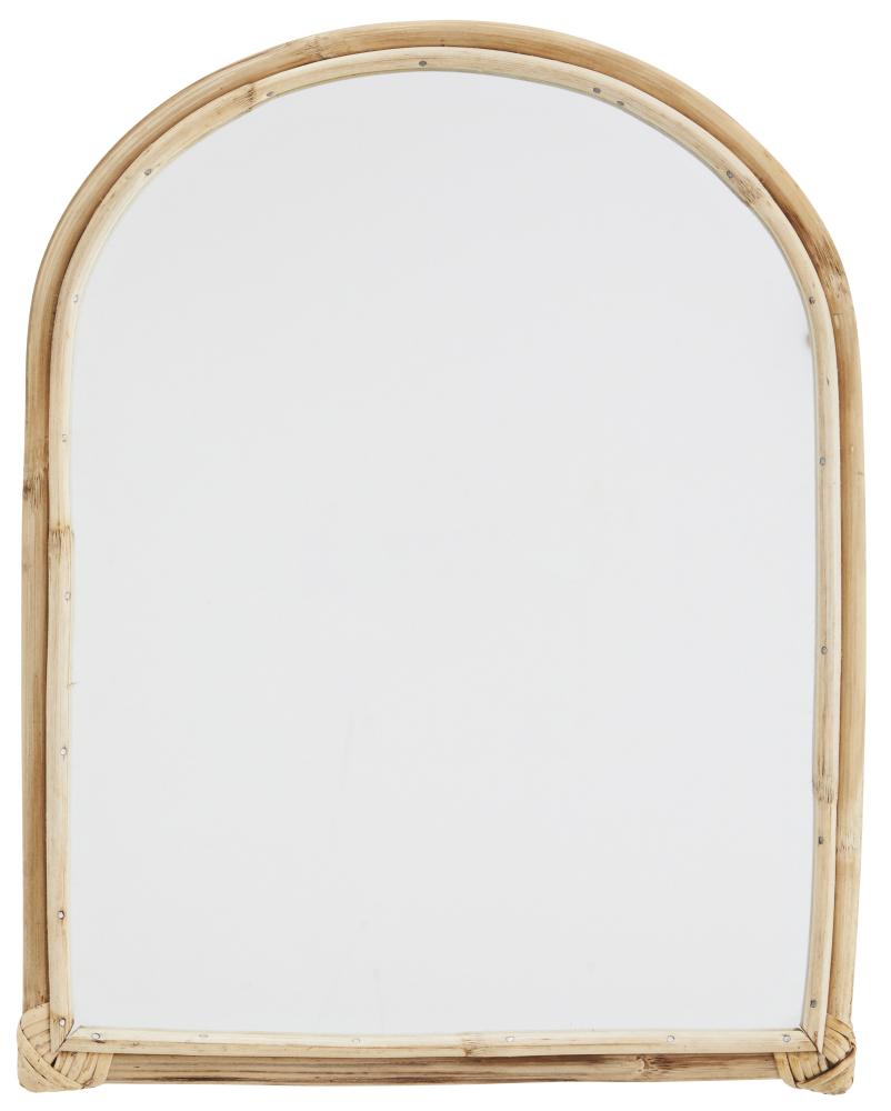 Beautiful mirror from Madam Stoltz, which looks fantastic in any room. The mirror has an elegant arch shape, finished with a bamboo frame. The combination of the design of the mirror and the bamboo creates an artistic form which is both fresh and modern-looking. The mirror is sized 36x47 cm. The mirror is made with natural materials and each item can vary slightly in appearance as a result.