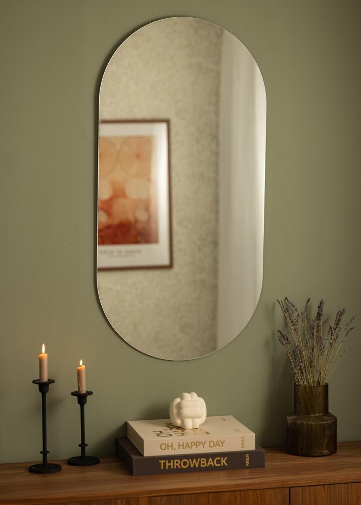 The oblong, oval shape with smooth and rounded edges creates a harmonious feeling in the room. The design of the mirror is not only aesthetically pleasing, but also functional, with the ability to choose which side should be facing up or down to fit your specific interior. No matter where you place it, this mirror will be a cherished detail in your home.