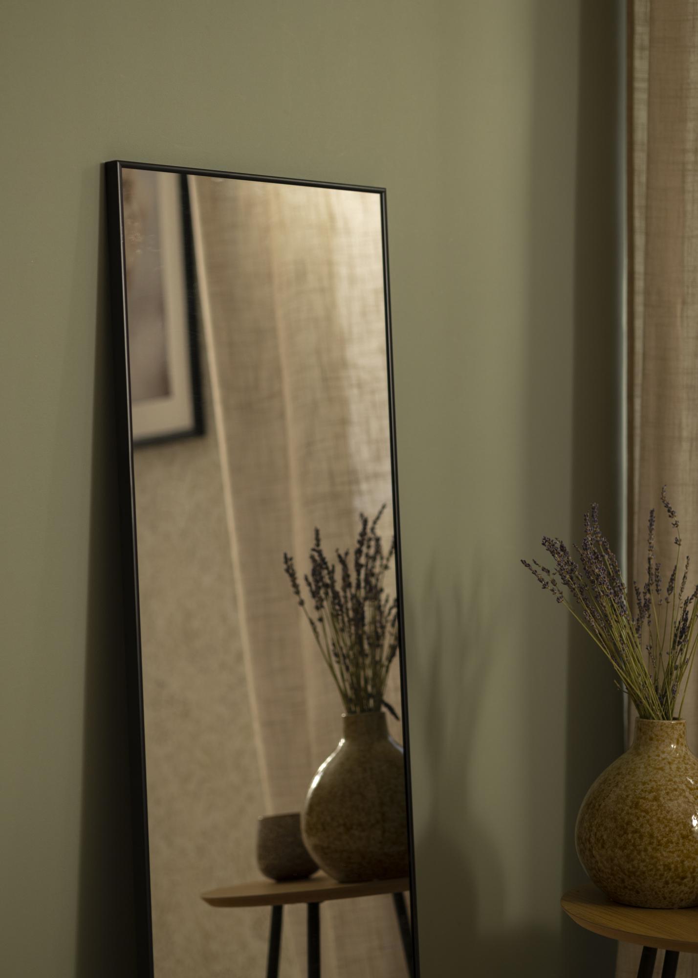 Discover the sleek elegance of our 45x125 cm vertical mirror, a perfect combination of function and design. This slim, rectangular mirror is stylishly framed with a black aluminum frame, adding a modern and sophisticated touch to any room. Its generous size and classic shape make it a practical and decorative addition to your home.
