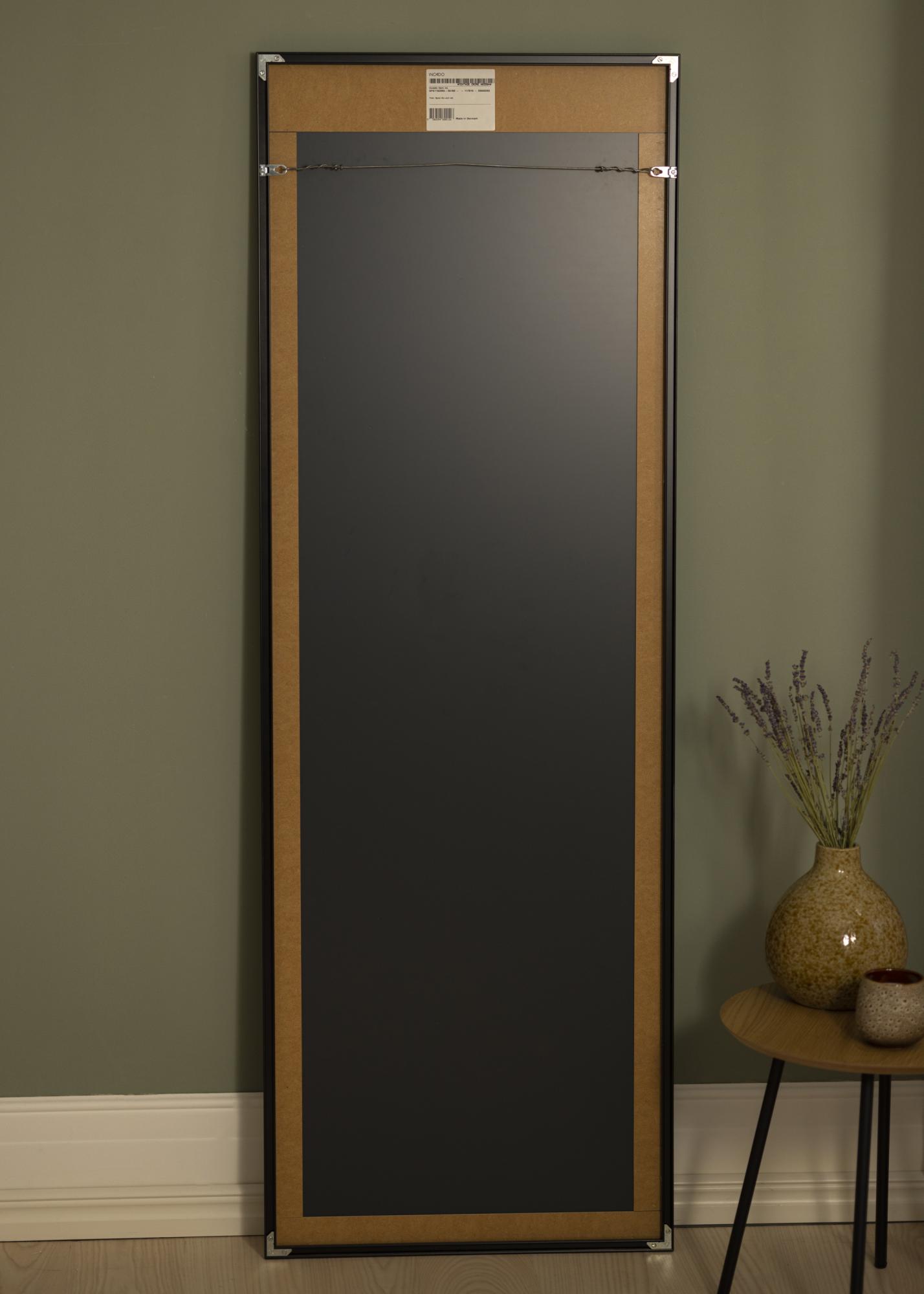 The mirror's vertical orientation is ideal for getting a complete overview of your outfit or creating an illusion of more space in the room. The black frame complements various interior styles and color schemes, making it a versatile choice for both minimalist and more traditional environments. Whether you place it in the bedroom, hallway, or living room, this mirror will be a appreciated addition to your decor.