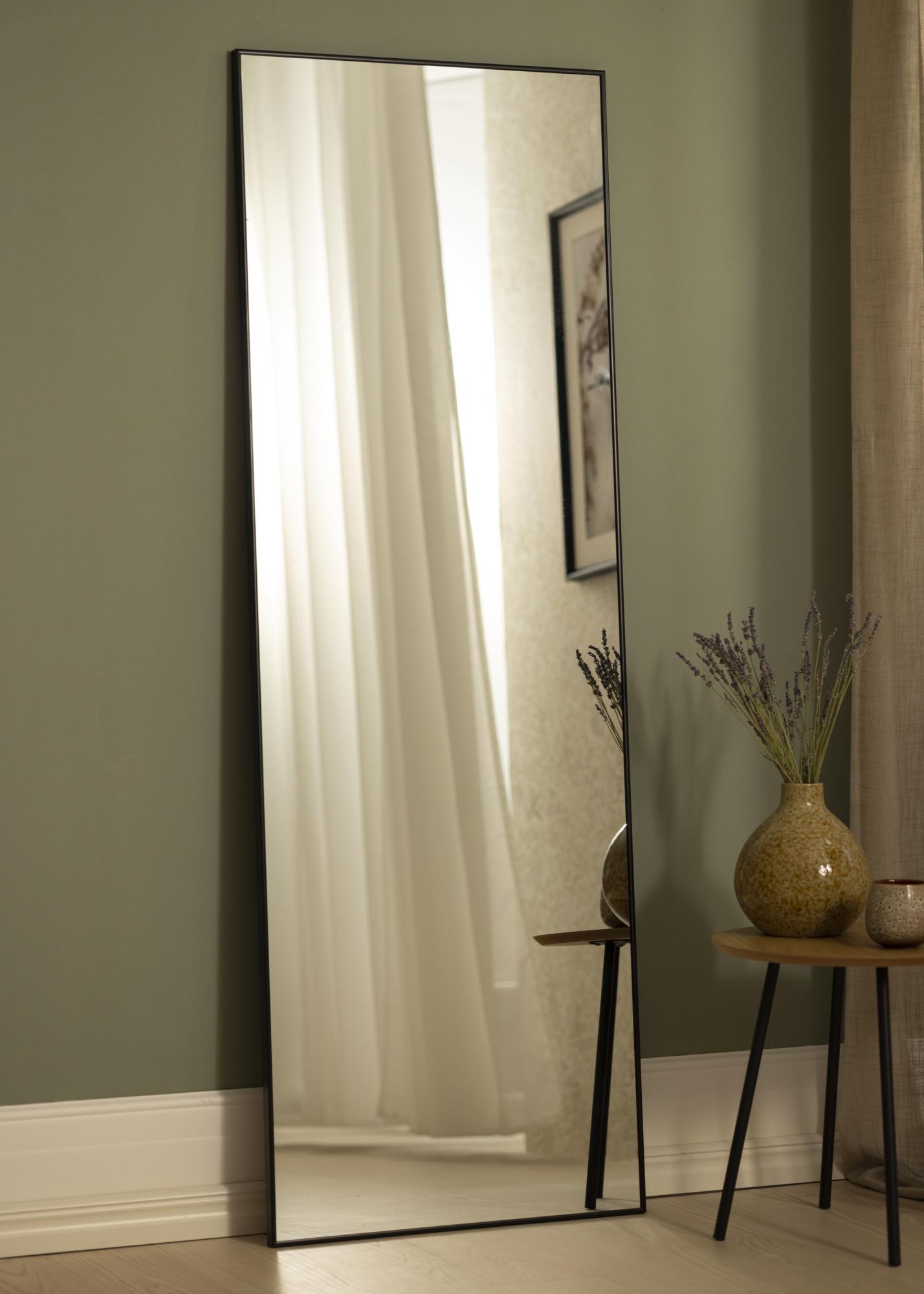 Discover the sleek elegance with our 60x165 cm vertical mirror, a perfect combination of function and design. This slim, rectangular mirror is elegantly surrounded by a black aluminum frame, providing a modern and sophisticated feel to any room. Its generous size and classic shape make it a practical and decorative element in your home. With its height, this is a true full length mirror.