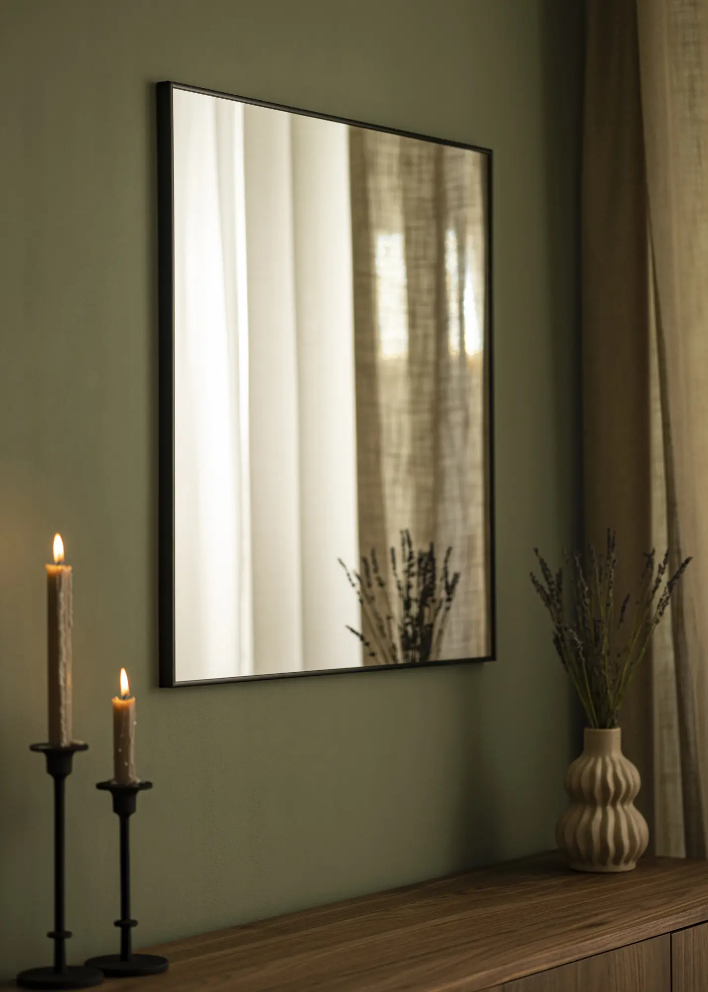 Discover the sleek elegance of our 75x75 cm standing mirror, a perfect combination of function and modern design. This slender, rectangular mirror is elegantly framed with black aluminium, giving a contemporary and sophisticated feel to any room. Its generous size and classic shape make it a practical and decorative addition to your home.