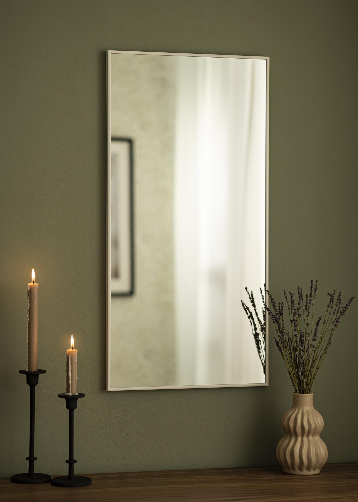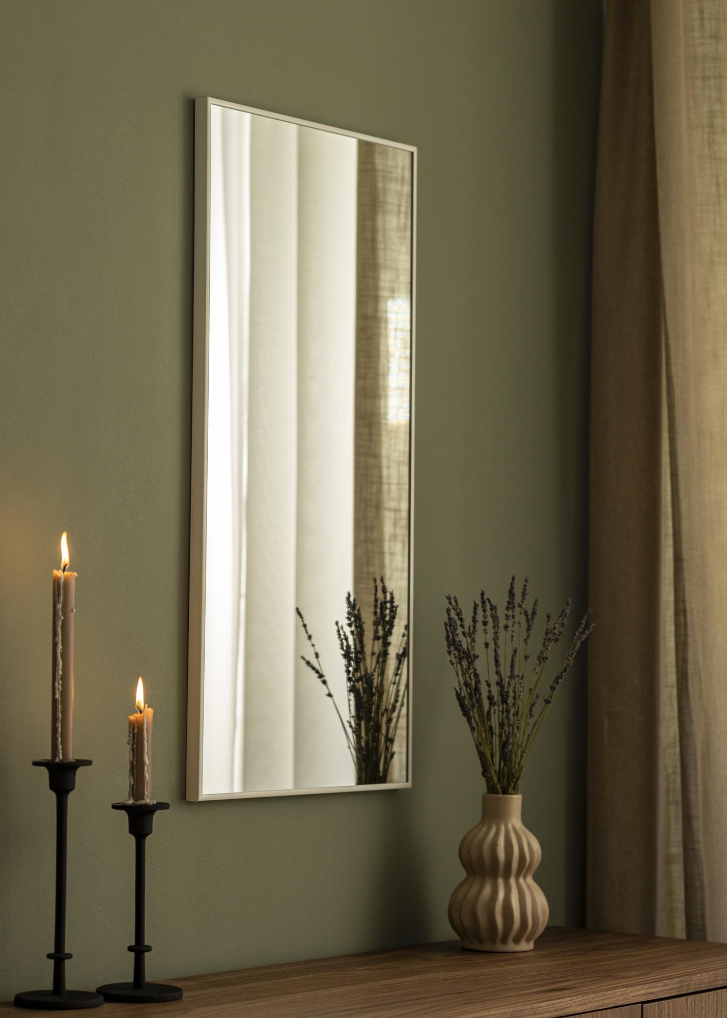 Create a sense of space and light in your home with this stylish mirror. With its dimensions of 40.5x80.5 cm, it is perfect for creating an illusion of a larger room or as a practical detail in the hallway. The white aluminium frame adds a modern touch while keeping the design clean and timeless.