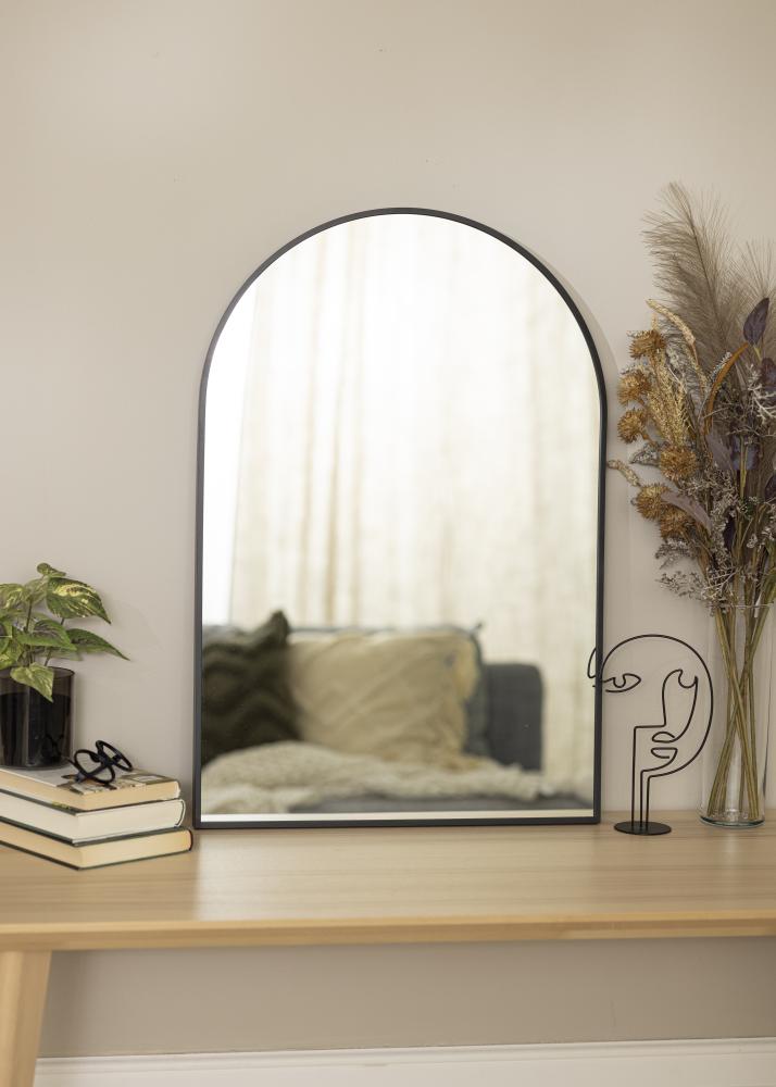 This is an excellent choice if you’re looking for a mirror with modern arched design with a stylish black frame. The mirror frame is 28 mm deep and made from metal. This mirror is sure to become a valued decor detail in your hall, living room or anywhere in your home as it beautifully reflects light from every source sharing it around the room. The robust material makes this mirror ideal for use in the bathroom.