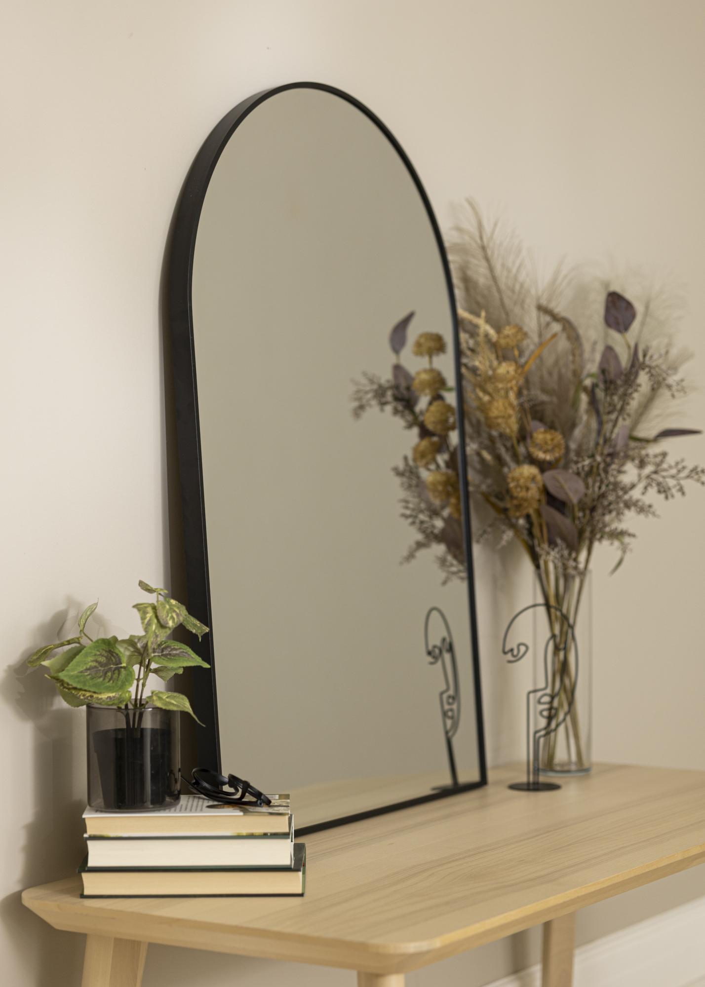 This is an excellent choice if you’re looking for a mirror with modern arched design with a stylish black frame. The mirror frame is 28 mm deep and made from metal. This mirror is sure to become a valued decor detail in your hall, living room or anywhere in your home as it beautifully reflects light from every source sharing it around the room. The robust material makes this mirror ideal for use in the bathroom.