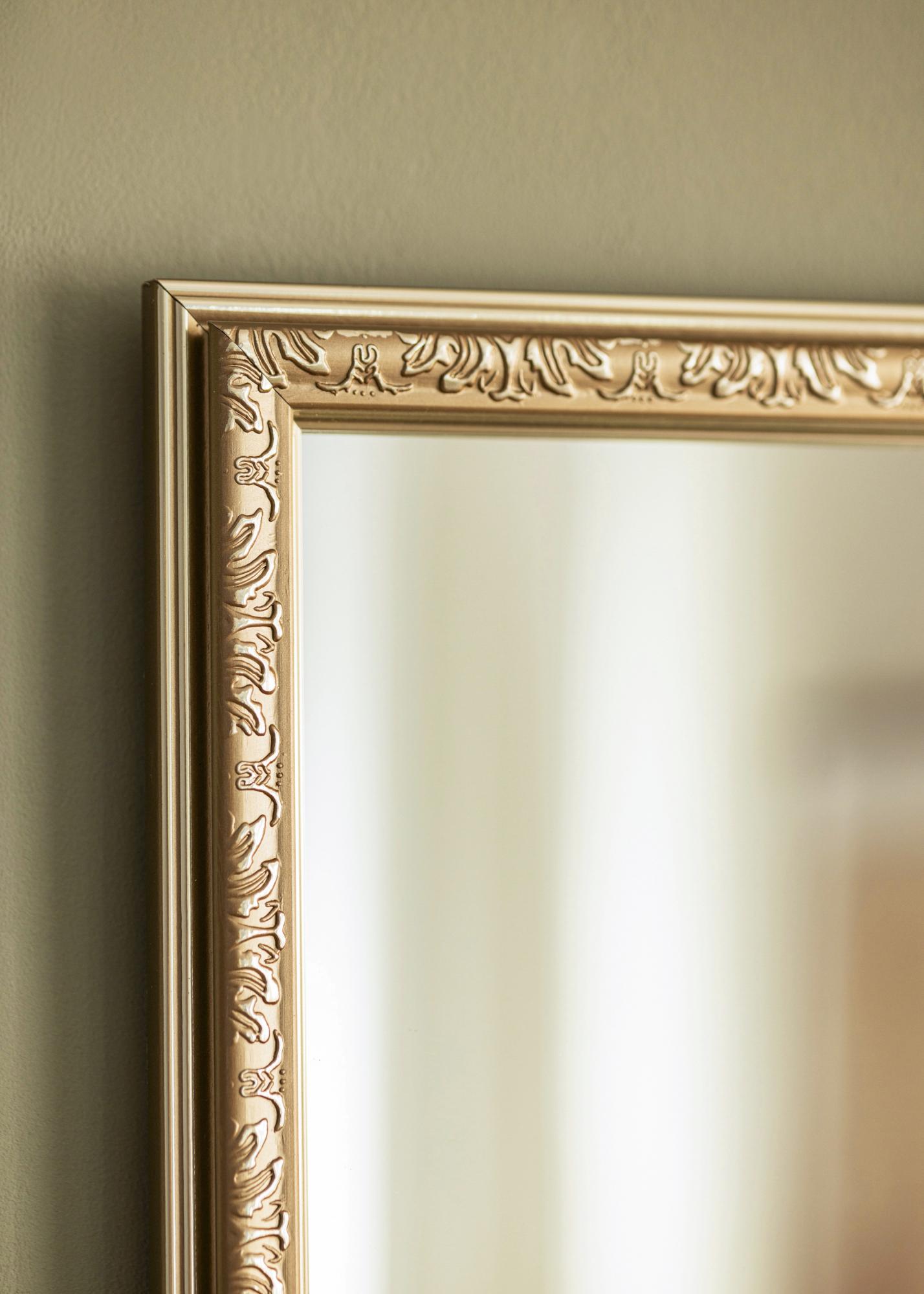 Let this timeless mirror brighten up the walls of your home. The silver frame has an ornate profile decorated with a beautiful pattern. The classic look makes this mirror an excellent addition to virtually any room either as a standalone decor detail or as an interesting feature in an elegant picture wall!