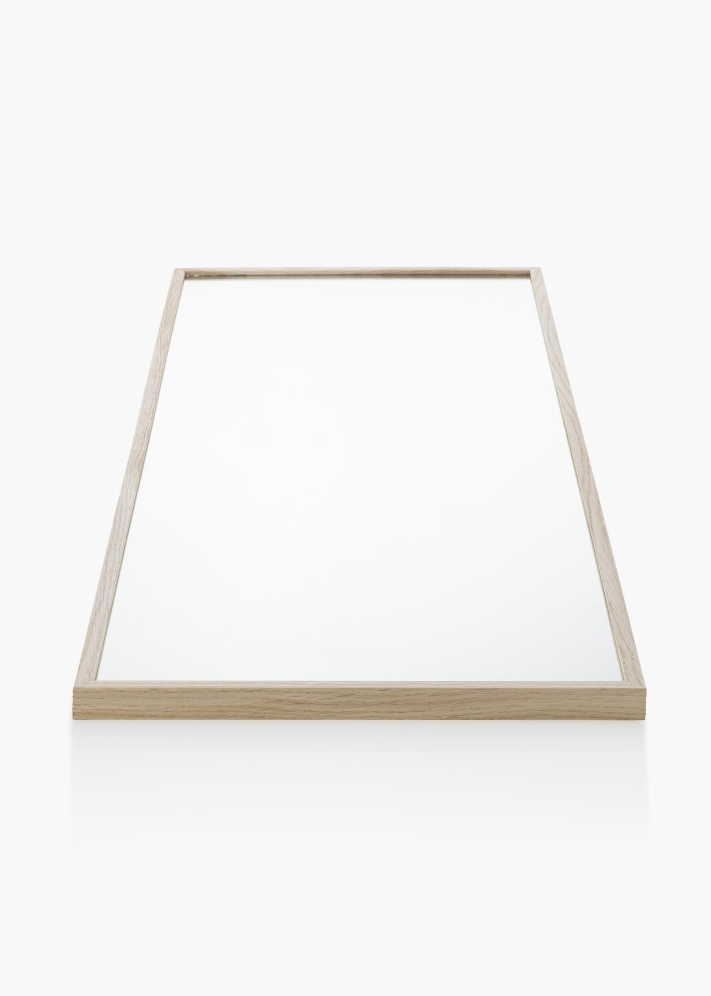 This is a wall mirror with a narrow wooden frame that works incredibly well with both modern and bohemian decor styles. The mirror is a classic example of Scandinavian design at its best. The clear mirror glass and a light wooden frame with a straight profile give the mirror a bright and fresh appearance.