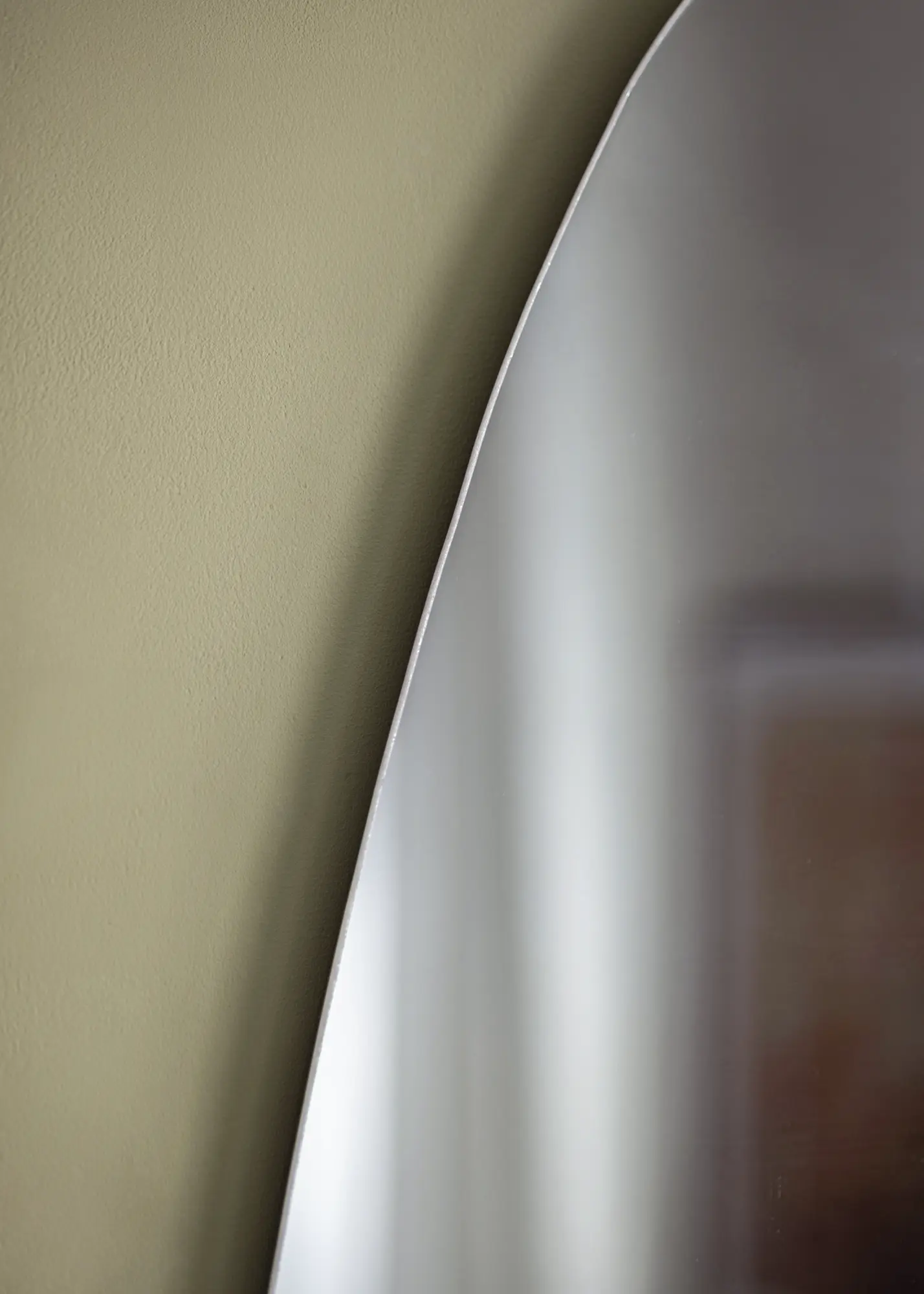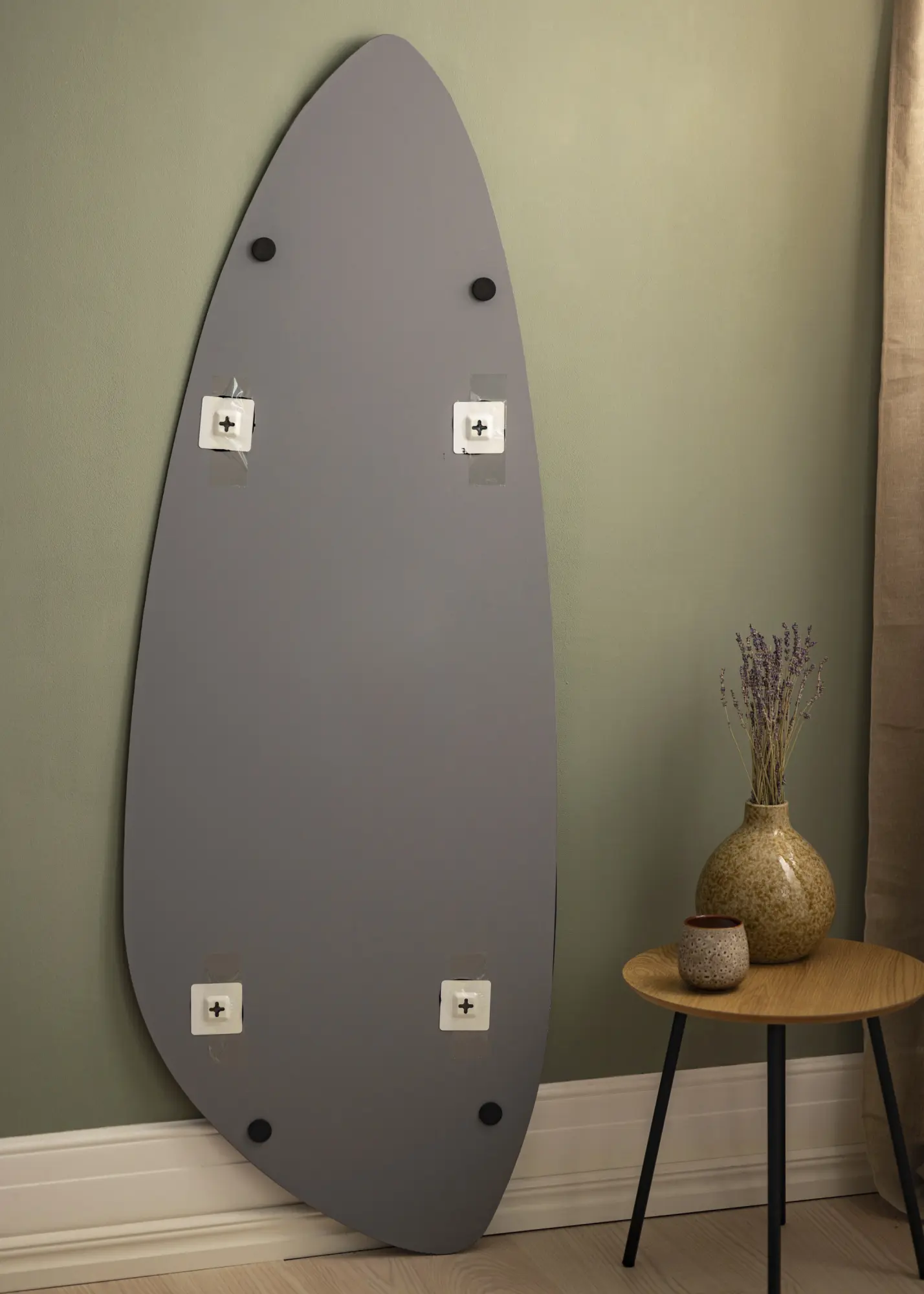 Discover the unique charm of our oblong-shaped mirror, a perfect combination of functionality and aesthetics. With its generous size of 58x160 cm, this mirror offers a full-length reflection that is ideal for bedrooms, hallways, or dressing rooms. The mirror has an elegant, oblong droplet shape that adds a contemporary and soft character to any room, and its grey-toned glass adds a sophisticated and modern touch that harmonizes with a variety of interior styles.