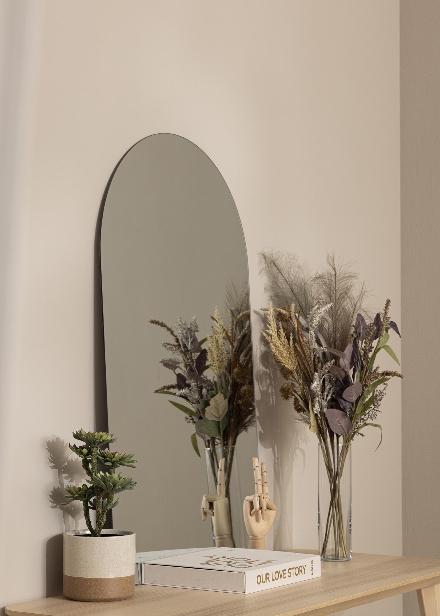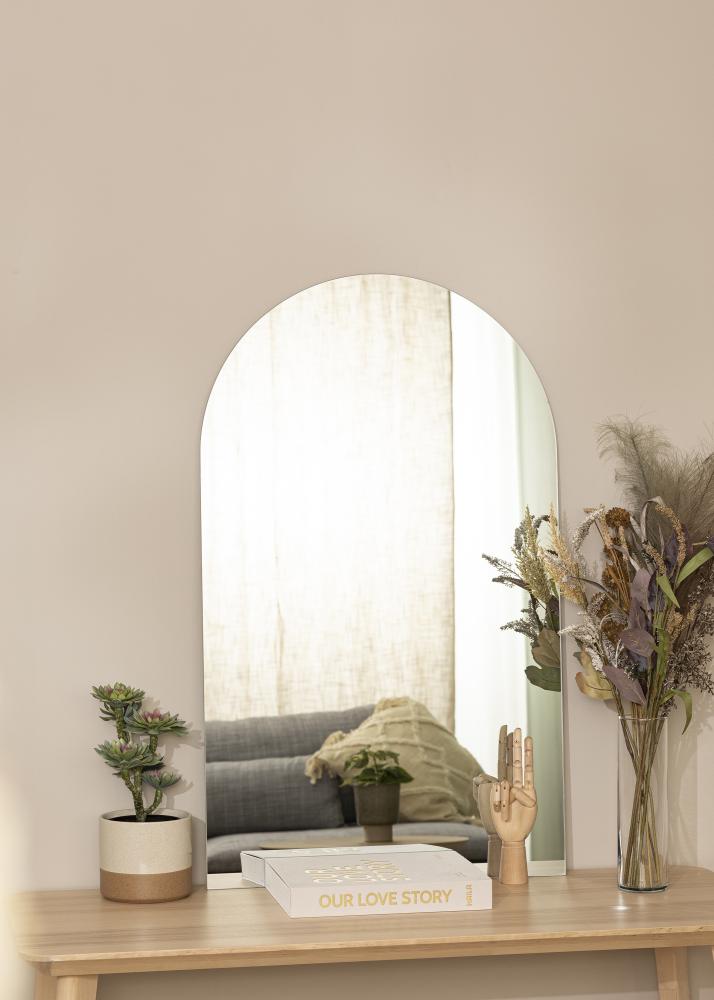 A stylish mirror like this is perfectly suited to being wall mounted above a dresser, a side table or any other flat surface that sits parallel to the lower edge of the mirror. As the mirror measures 60x100 cm, it’s a reasonably large decor detail which beautifully reflects light from windows and interior lights.