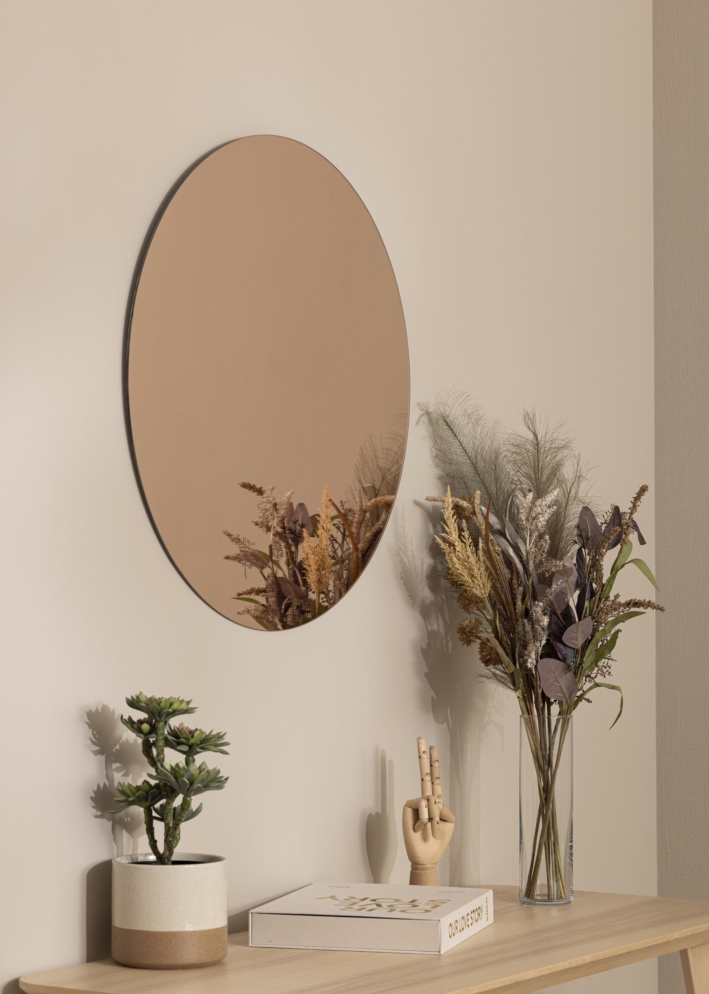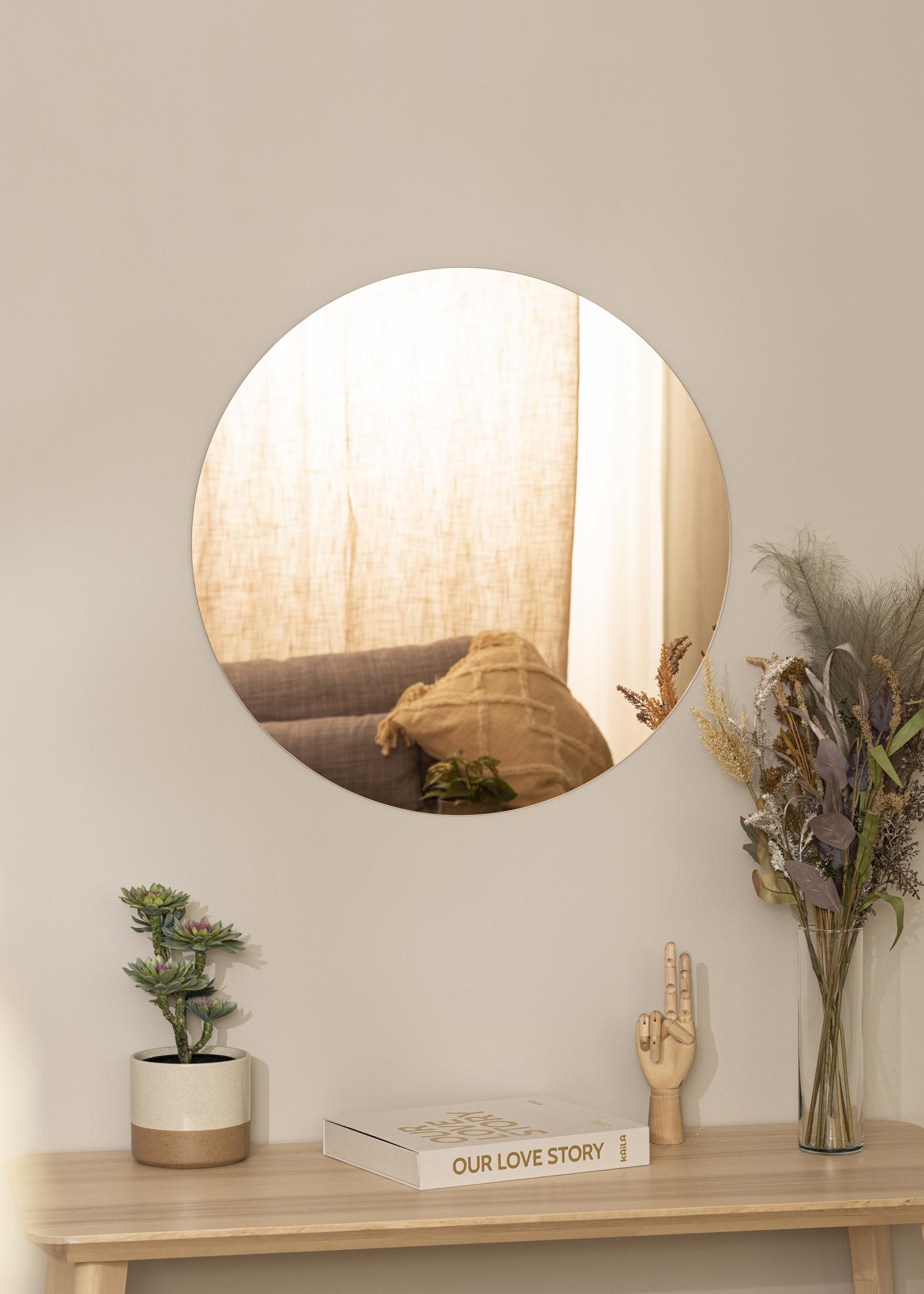 Add a touch of pink to your home with this lovely round wall mirror. The minimalist design and classic round shape are beautifully combined with thin, tinted mirror glass in a subtle shade of pink. The mirror measures 70 cm in diameter and on the back you’ll find practical wall brackets.