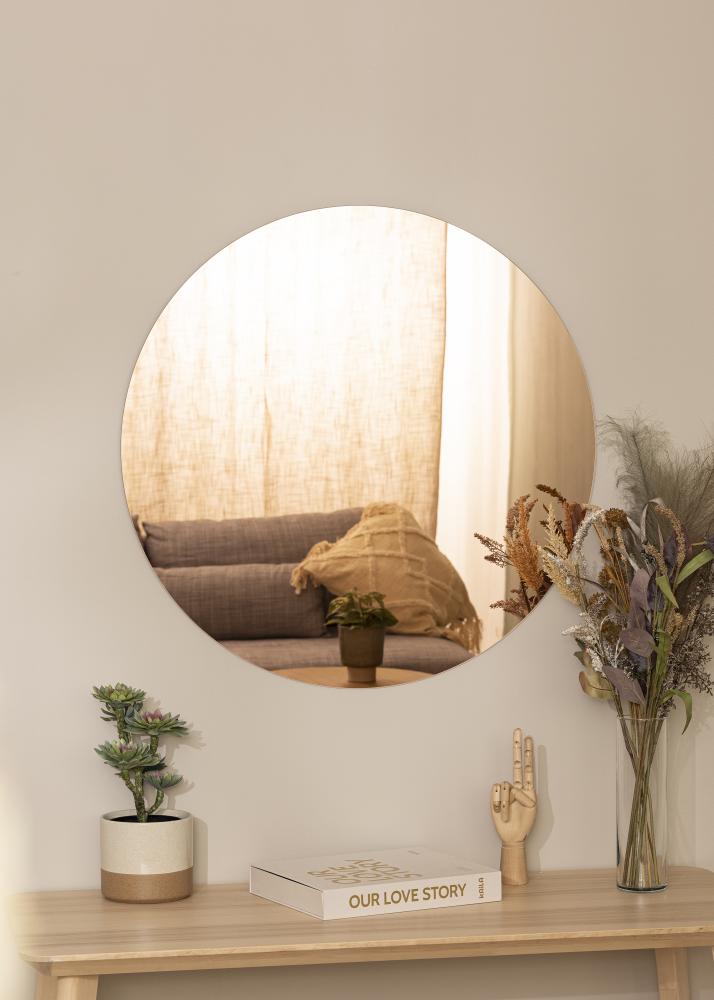 Add a touch of pink to your home with this lovely round wall mirror. The minimalist design and classic round shape are beautifully combined with thin, tinted mirror glass in a subtle shade of pink. The mirror measures 80 cm in diameter and on the back you’ll find practical wall brackets.
