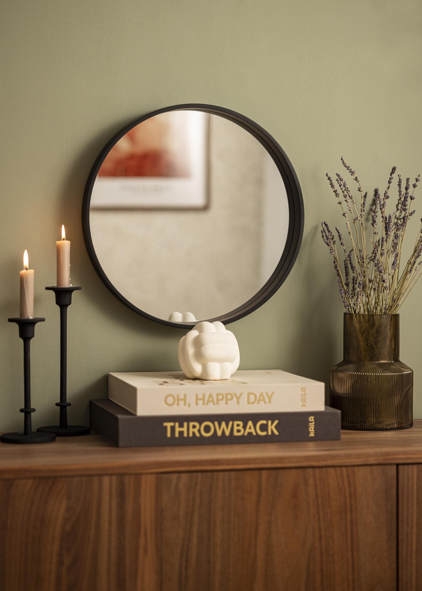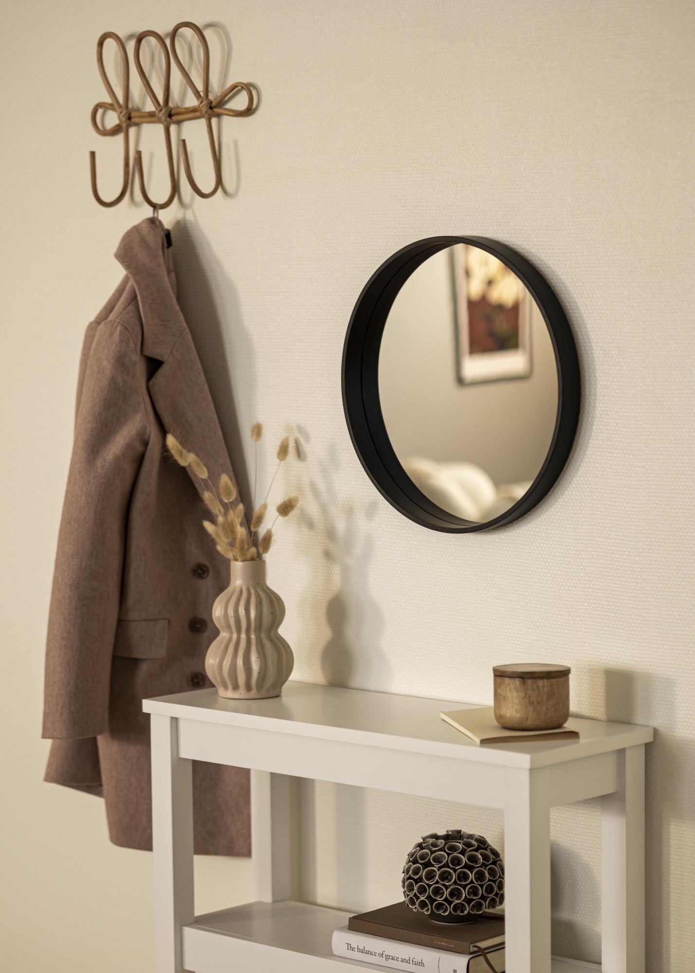 Discover the elegant simplicity of our round mirror, a timeless interior detail that fits perfectly in every home. This stylish, round mirror stands out with its black frame, providing a fresh and modern feel to the room. Its minimalist design allows it to blend in with various interior styles, from Scandinavian to industrial.