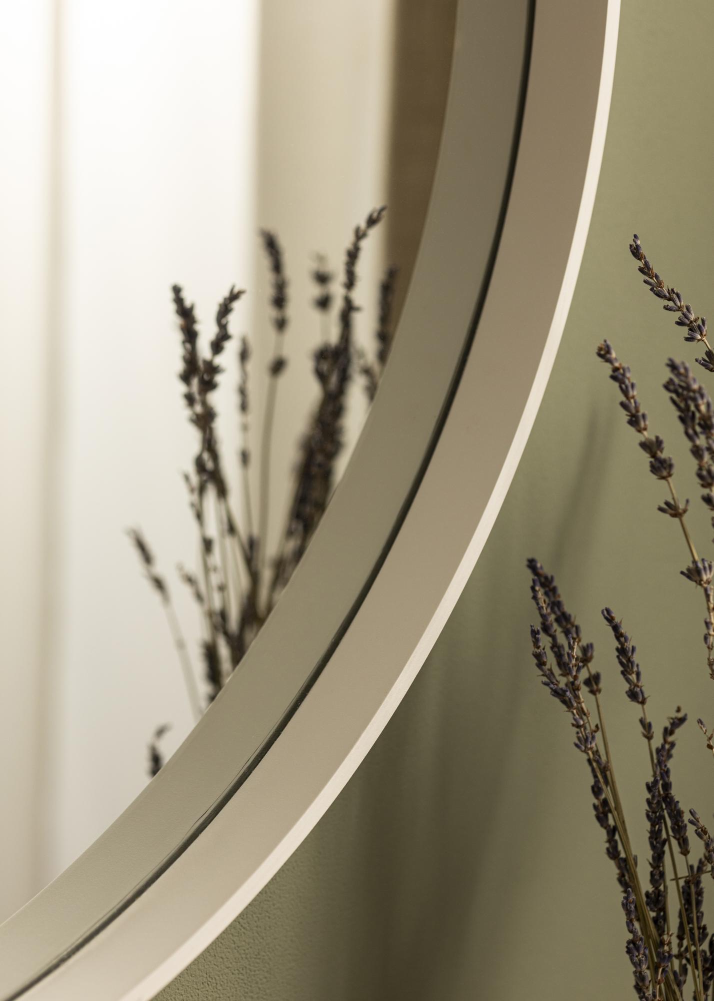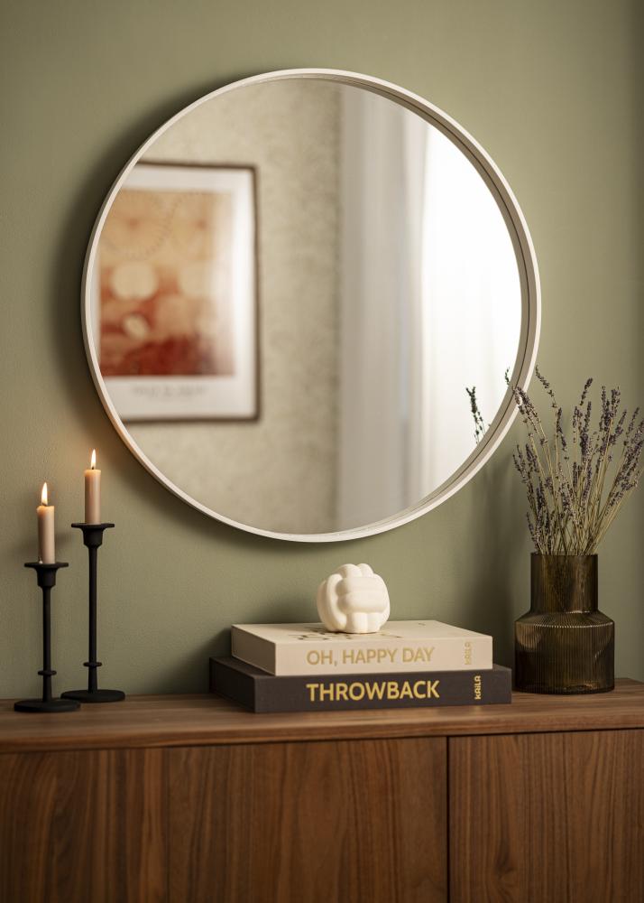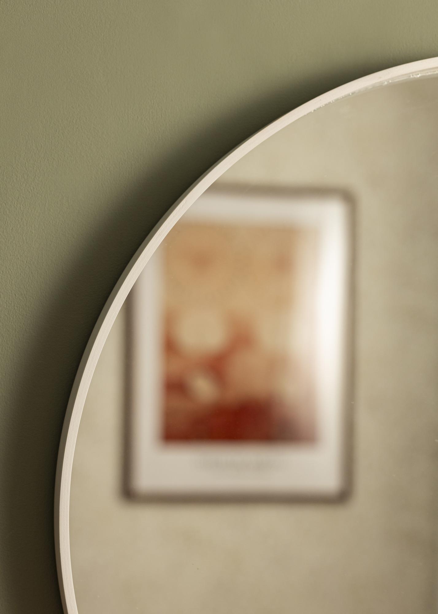 Discover the elegant simplicity of our round mirror, a timeless interior detail that fits perfectly in every home. The white frame surrounding the mirror adds a bright and clean touch that complements all colors and styles in your room. Its minimalist design allows it to blend in while remaining a distinct accent on the wall.