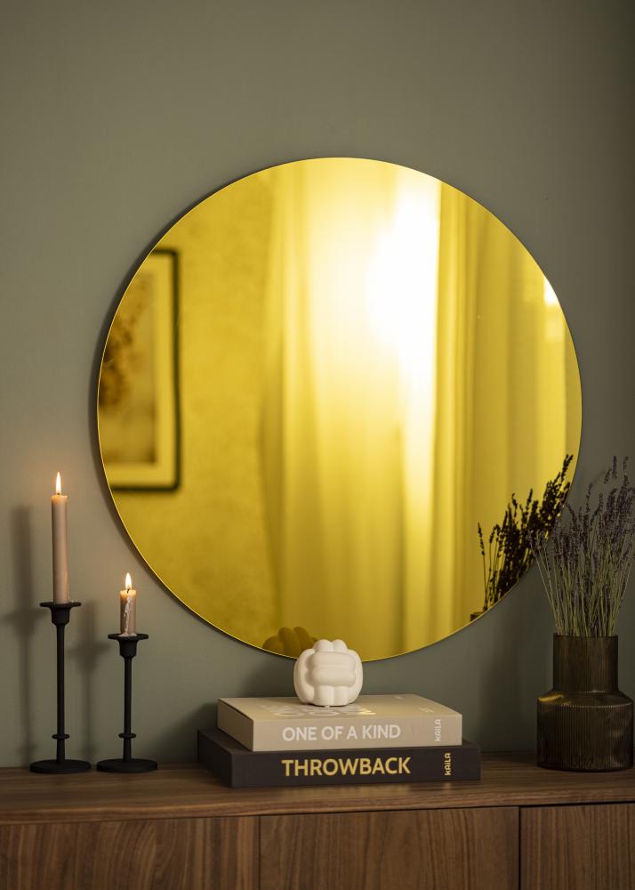 This modern round mirror is an eye-catching decor detail that’s perfect for your home. Whether you want to hang your mirror in the bedroom, hallway or living room, it’ll add a sophisticated and vibrant splash of colour with its rich, warm yellow-tinted mirror glass. The mirror has thin mirror glass and a frameless design characteristic of minimalist decor. On the back you’ll find brackets for wall mounting.