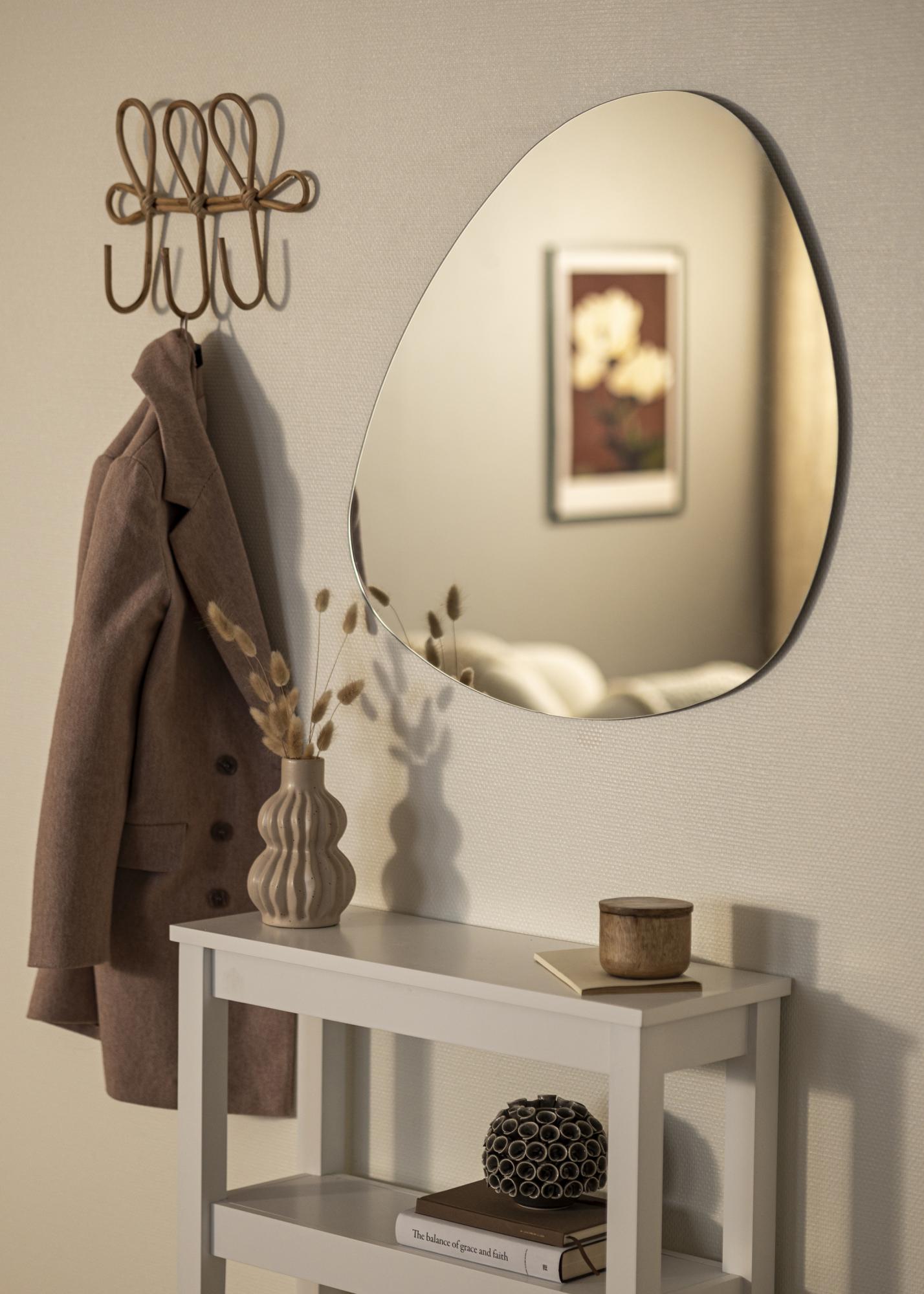 Discover a unique detail for your home with our asymmetrical mirror, a design that breaks from tradition and brings a sense of flow and softness to the room. With its curved lines, the mirror provides a harmonious and balanced feeling, perfect for creating an interesting visual effect on the wall. Its size of 70x70 cm makes it an ideal accent for both small and large spaces.