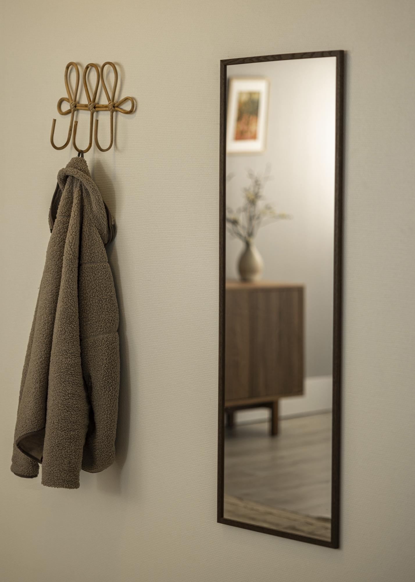 The frame of the mirror is made of genuine oak wood and has a deep dark oak color that immediately catches the eye. The thickness of the frame contributes to a feeling of solidity and gives the mirror a striking presence on the wall. Not only is this mirror a practical accessory, it is also a work of art that complements and enhances your interior.