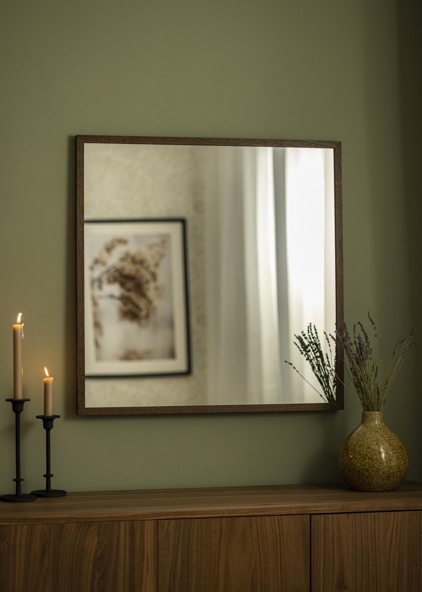 Discover the stylish elegance of our rectangular mirror, perfectly designed to enrich your home with a touch of classic beauty. With its generous dimensions of 78x78 cm, the mirror offers a practical and decorative function in any room. The thick frame, made of genuine oak wood, has a deep dark oak shade that immediately catches the eye and creates a warm and welcoming atmosphere.