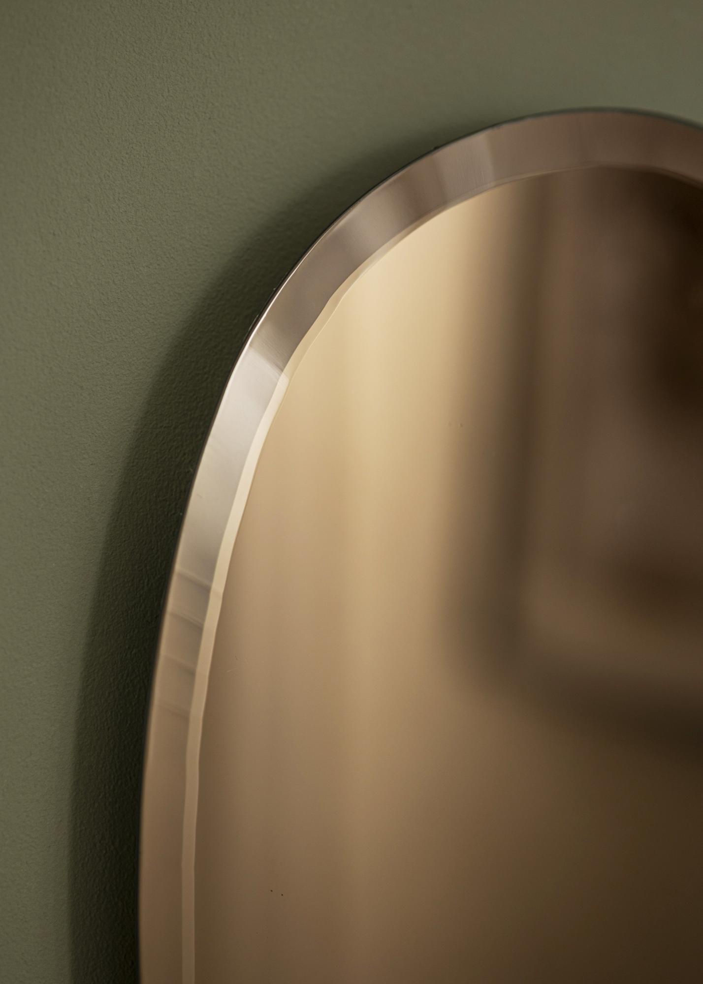 This mirror has a distinct and fluid form that exudes an organic feel, making it a striking accent in any room. The bronze-colored mirror glass provides a warm and inviting glow, adding a hint of retro charm without overwhelming the surrounding space.