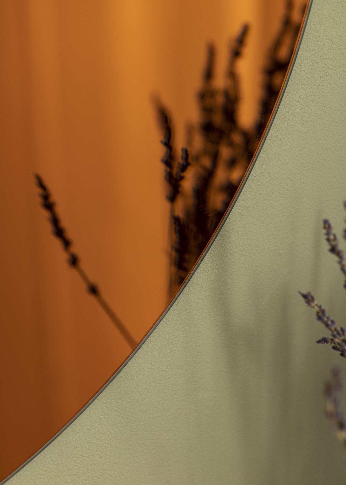 This wall mirror has a round shape with a diameter of 70 cm, thin mirror glass and a minimalist frameless design. It’s perfect for in the living room, dining room, hallway, bedroom or anywhere else you want an interesting and stylish decor detail.