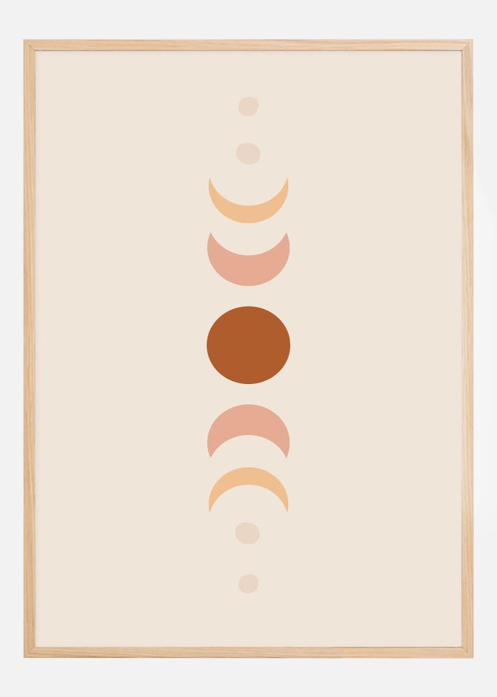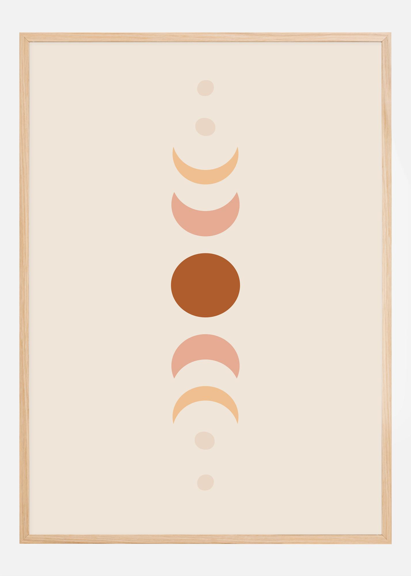 This aesthetically pleasing poster, depicting the phases of the moon in a vertical sequence, offers a calming and clean design that brings a sense of tranquility and harmony to any room. From the new moon to the full, each phase is depicted in soft pastel tones against a neutral background, creating a subtle yet powerful visual experience.