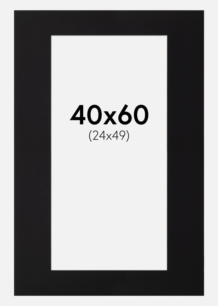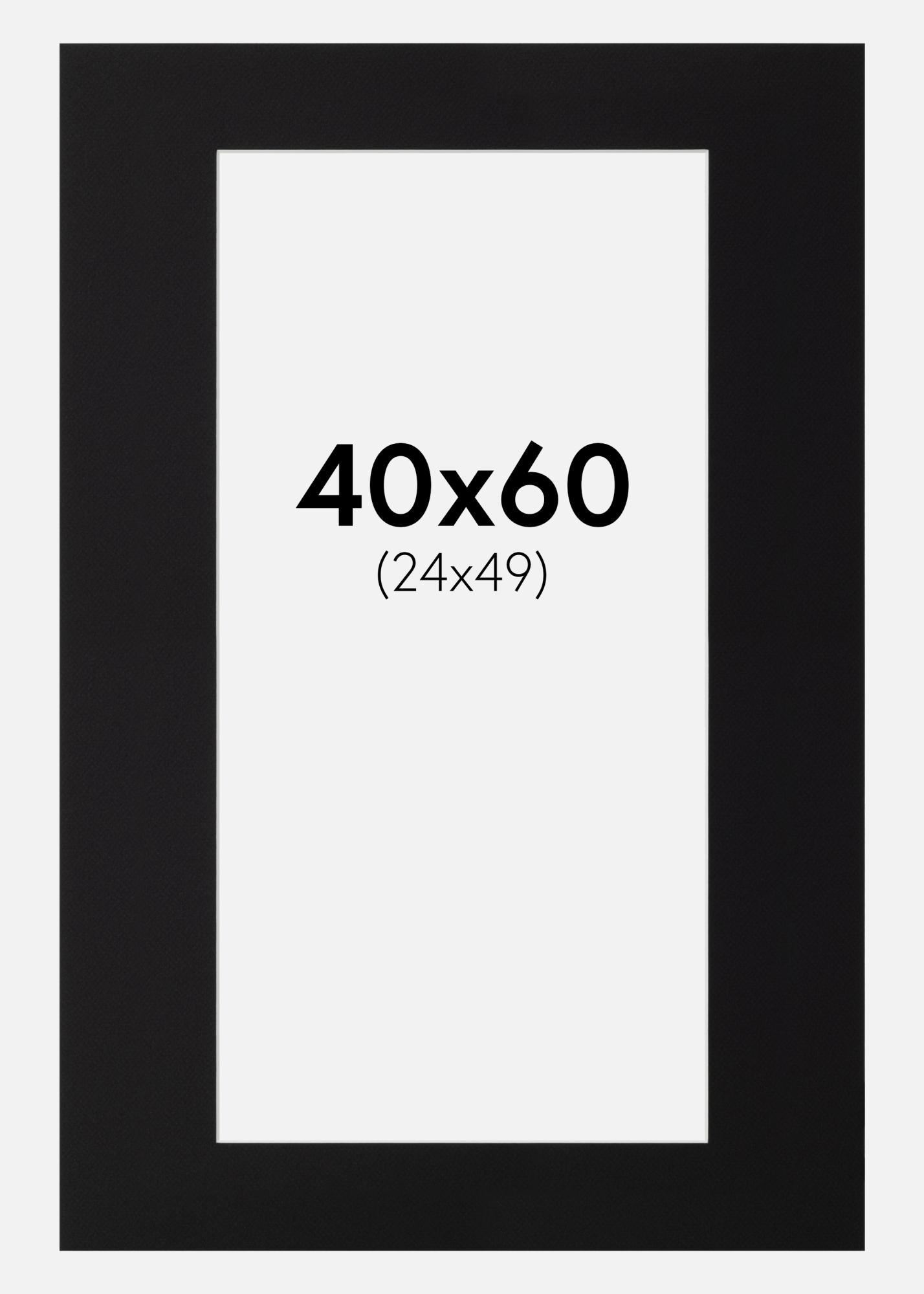 This elegant black mat is the perfect choice for giving your pictures and artworks a stylish framing. With a beveled inner edge and a white core, a subtle contrast effect is created that adds depth and elegance to your subject. The mat is designed to fit images sized 25x50 cm, while the outer dimension is 40x60 cm, making it ideal for both modern and classical framings.