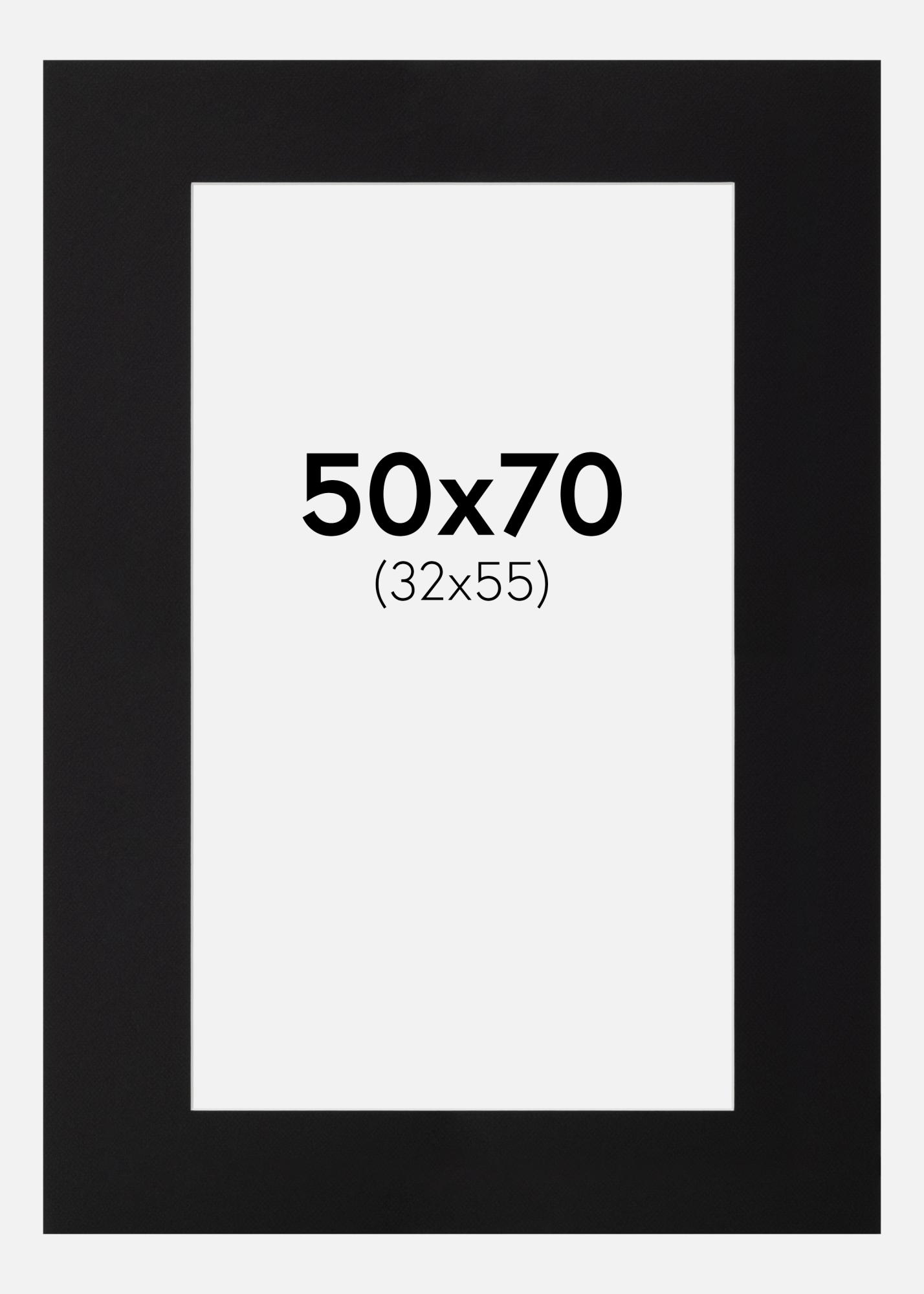 This elegant black mat is the perfect choice for giving your pictures and artworks a stylish framing. With a beveled inner edge and a white core, it creates a subtle contrast effect that adds depth and elegance to your subject. The mat is designed to fit pictures sized 33x56 cm, while the outer dimensions are 50x70 cm, making it ideal for both modern and classic framings.