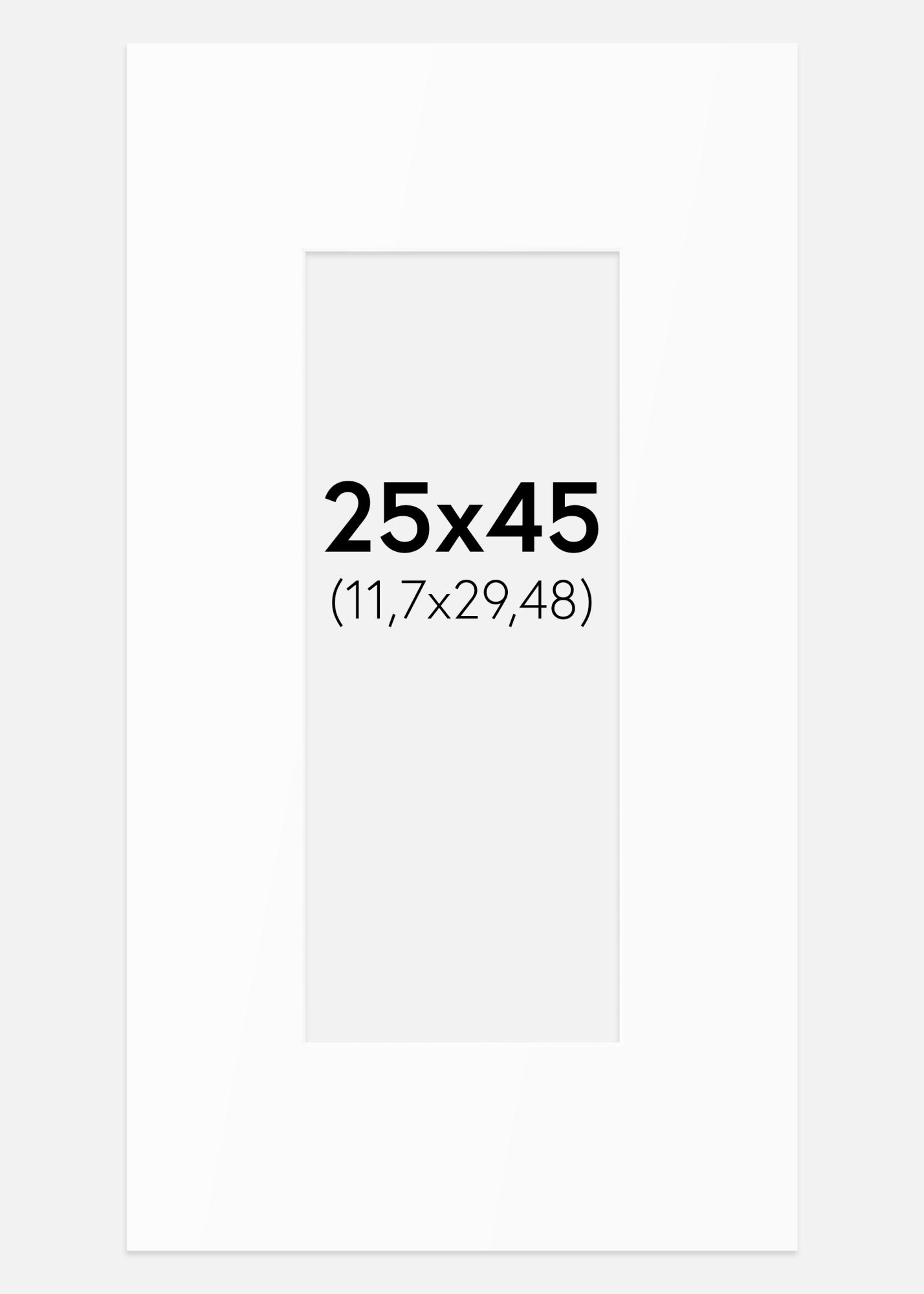 This elegant mat board in a white shade is the perfect choice to highlight your pictures and artworks. With a bevel-cut inner edge in the same white color, a stylish framing is created that gives depth and dimension to your subject. The mat board is designed to fit pictures sized 12.7x30.48 cm (5x12 inches), while the outer dimension is 25x45 cm, making it ideal for various types of frames.