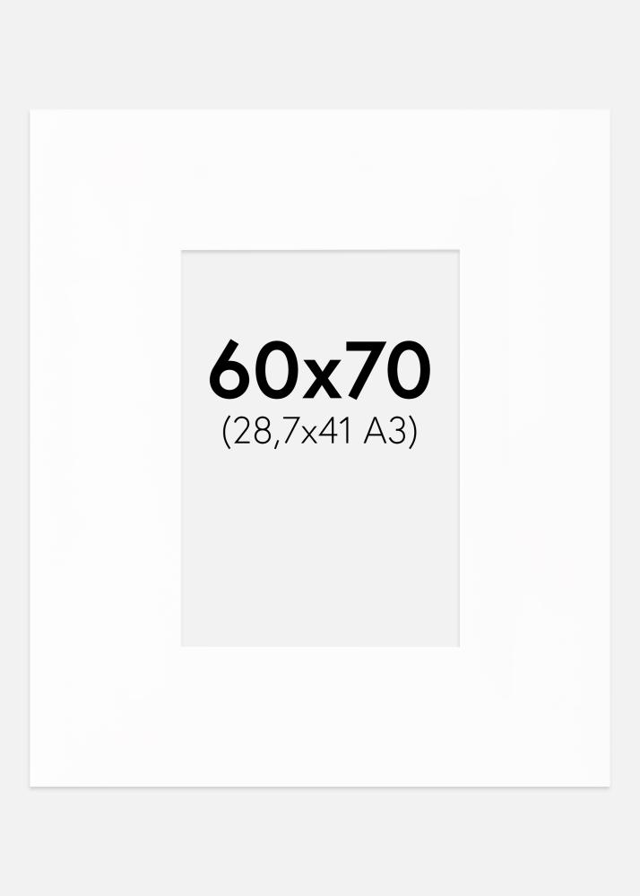 This XXL variant of the matboard has extra wide edges, which gives a sense of space and ensures that your subject really takes center stage. It is designed to fit pictures sized 29.7x42 cm (A3), while the outer dimension is 60x70 cm. This makes it ideal for both modern and classic framings, whether you want to create a dramatic effect or a more subtle presentation.