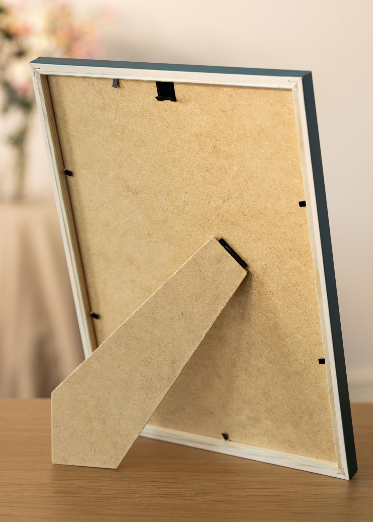 This frame is furnished with real glass and the backing is made from stable brown MDF. It also has convenient movable wall fixings, meaning that you can either choose to have it hanging portrait or landscape on your wall. To mount your picture in this picture frame, you simply raise the metal clips that hold the backing in place, and put your picture in.