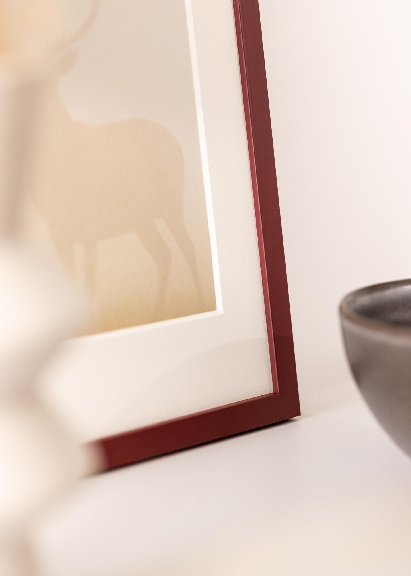 A stylistically simple frame with modern, square edges, and a width and depth of 15 mm. This frame comes from the Danish brand Incado's NordicLine series, and has a fashionable and pared-back design with prominent straight lines. It is made from wood and is furnished with a matte foil-wrapping in an elegant burgundy shade, giving your image a very striking framing.