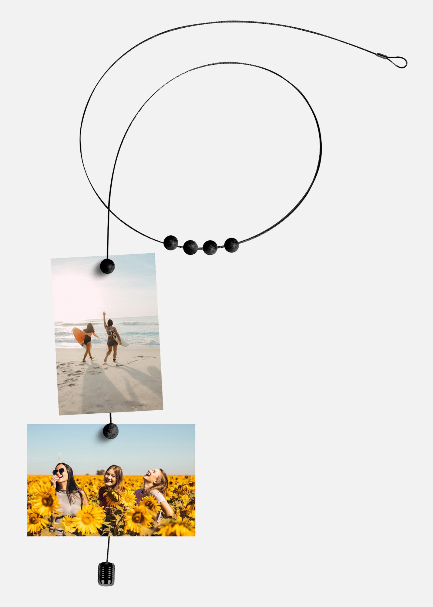 PAC Photo Rope Black is a stylish photo rope measuring 150 cm with a modern black tone. An excellent choice for those who want a sleek and discreet way to hang photos, cards, or small decorations in the home. The rope includes powerful magnets for easy hanging.