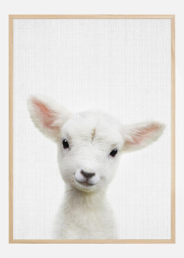 Our delightful lamb poster is a pure pleasure for the eyes, perfect for creating a soft and welcoming atmosphere in any space. This charming print features a fluffy little lamb looking into the camera with a gaze full of innocence and curiosity. With its fur in a pure shade of white and the delicate pink color of its ears, this poster offers a sense of warmth and comfort.