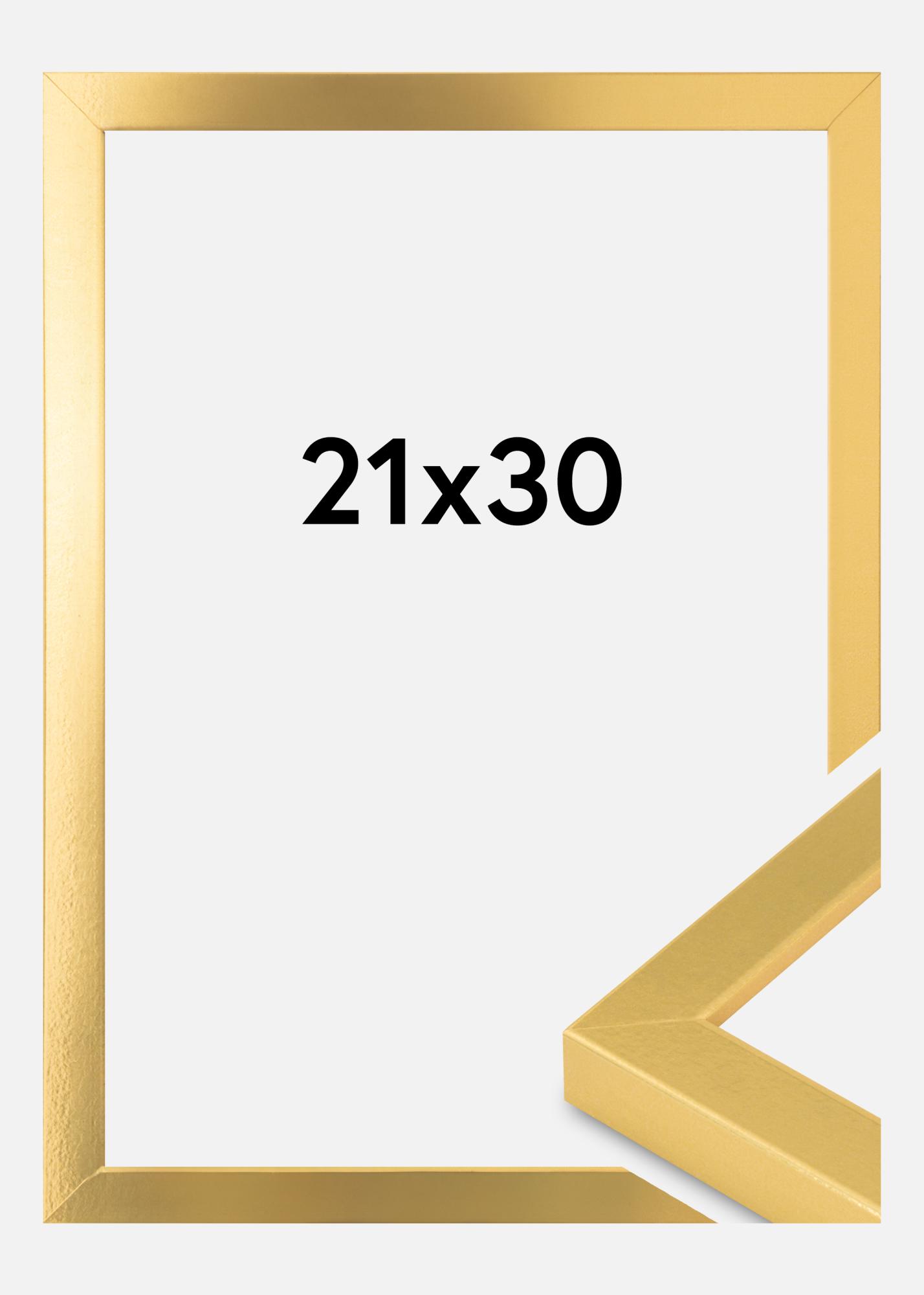 To protect your pictures, the frame has a crystal-clear and shatterproof acrylic glass. The acrylic glass is covered with protective film on both sides, which must be removed before use to ensure optimal clarity. This gold-colored frame in the size 21 x 30 cm is an excellent choice for highlighting your favorite pictures or artwork in an elegant manner.
