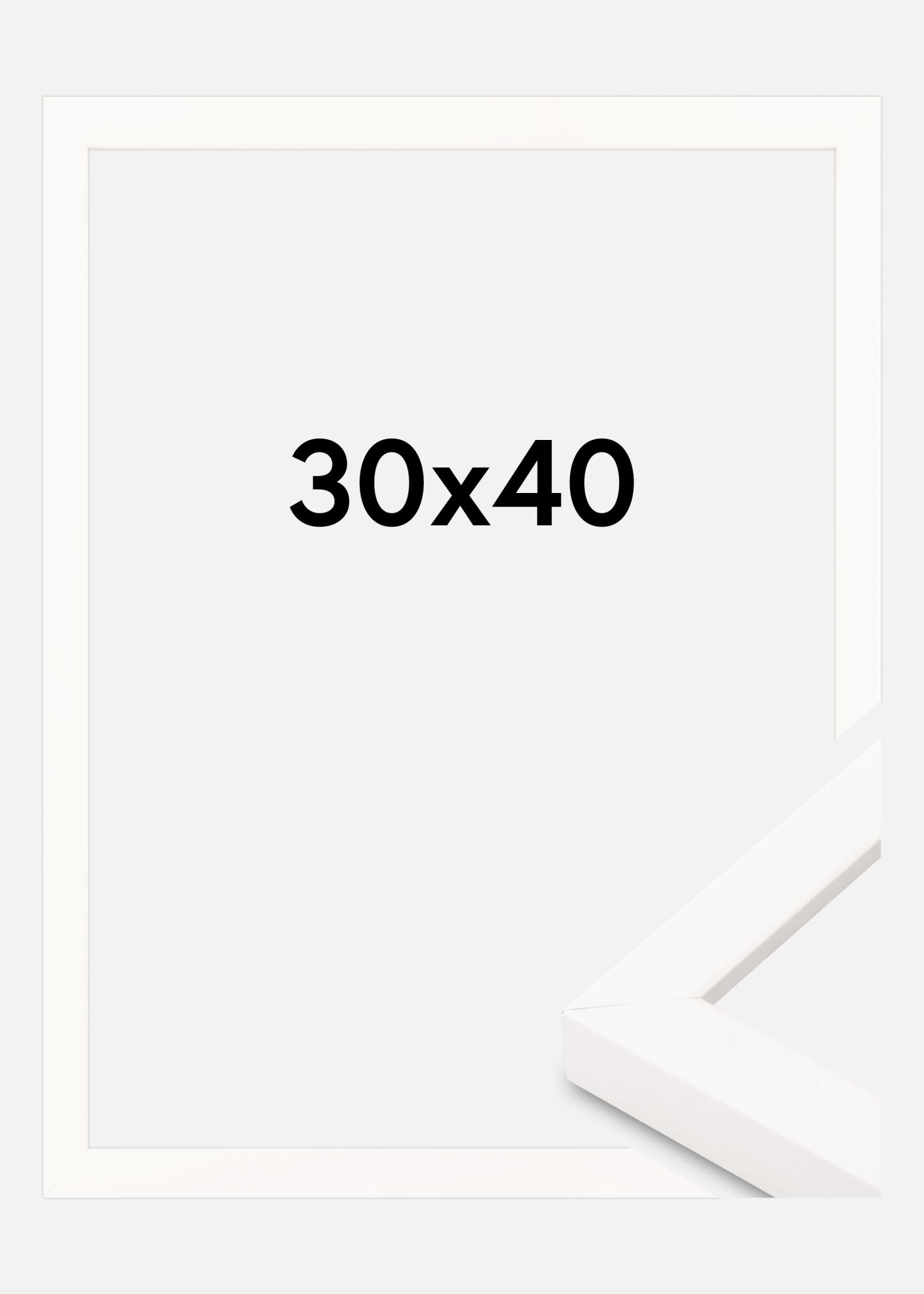 This white photo frame is perfect for highlighting your favorite subjects in the size 30x40 cm. With its elegant and minimalist design, it fits most interior styles. The frame's surface is matte and has a smooth finish, which gives a stylish and sophisticated impression. The thin, smooth profile of 18 mm width and 18 mm depth ensures that the frame does not overshadow the subject but rather lets it take center stage.