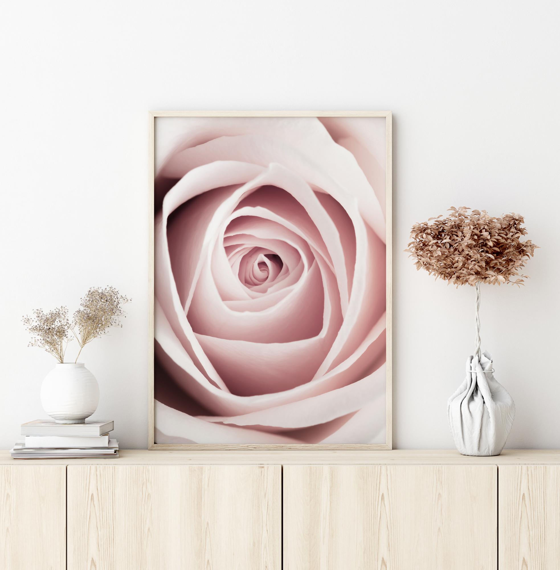 A breath-taking print of a small pink rosebud. The beautiful soft tones of the rose create a feeling of warmth and depth. Add this delicate print to your bedroom wall and bring the beauty of this flower into your home.