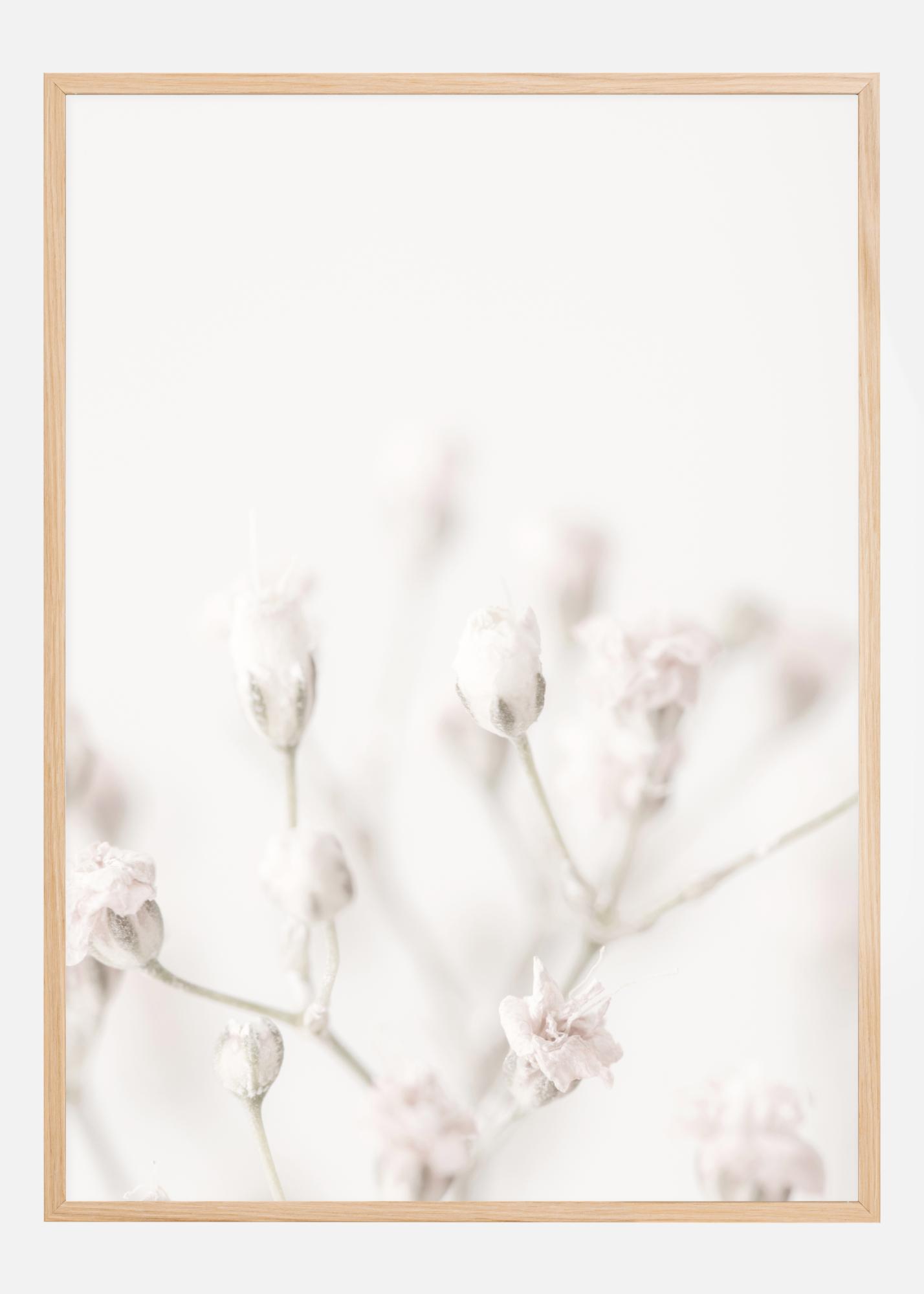 An adorable close-up picture of small pink flowers strongly enduring the white snow fall. With a blurry white background, the flowers can only faintly be seen thanks to their soft pink petals. Bring the winter wonderland into your home with the stunning print.
