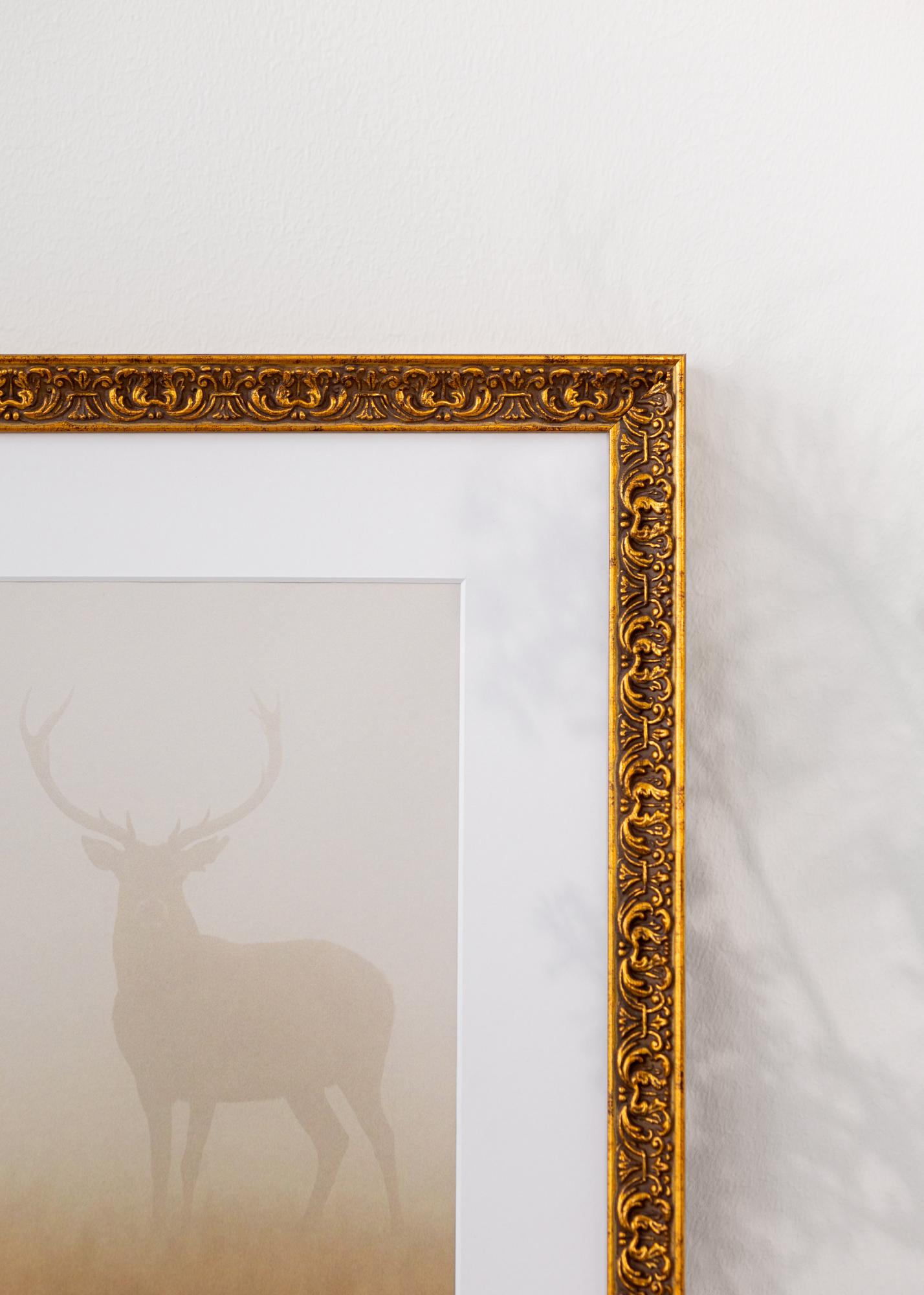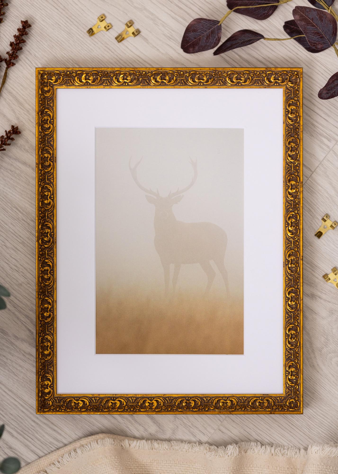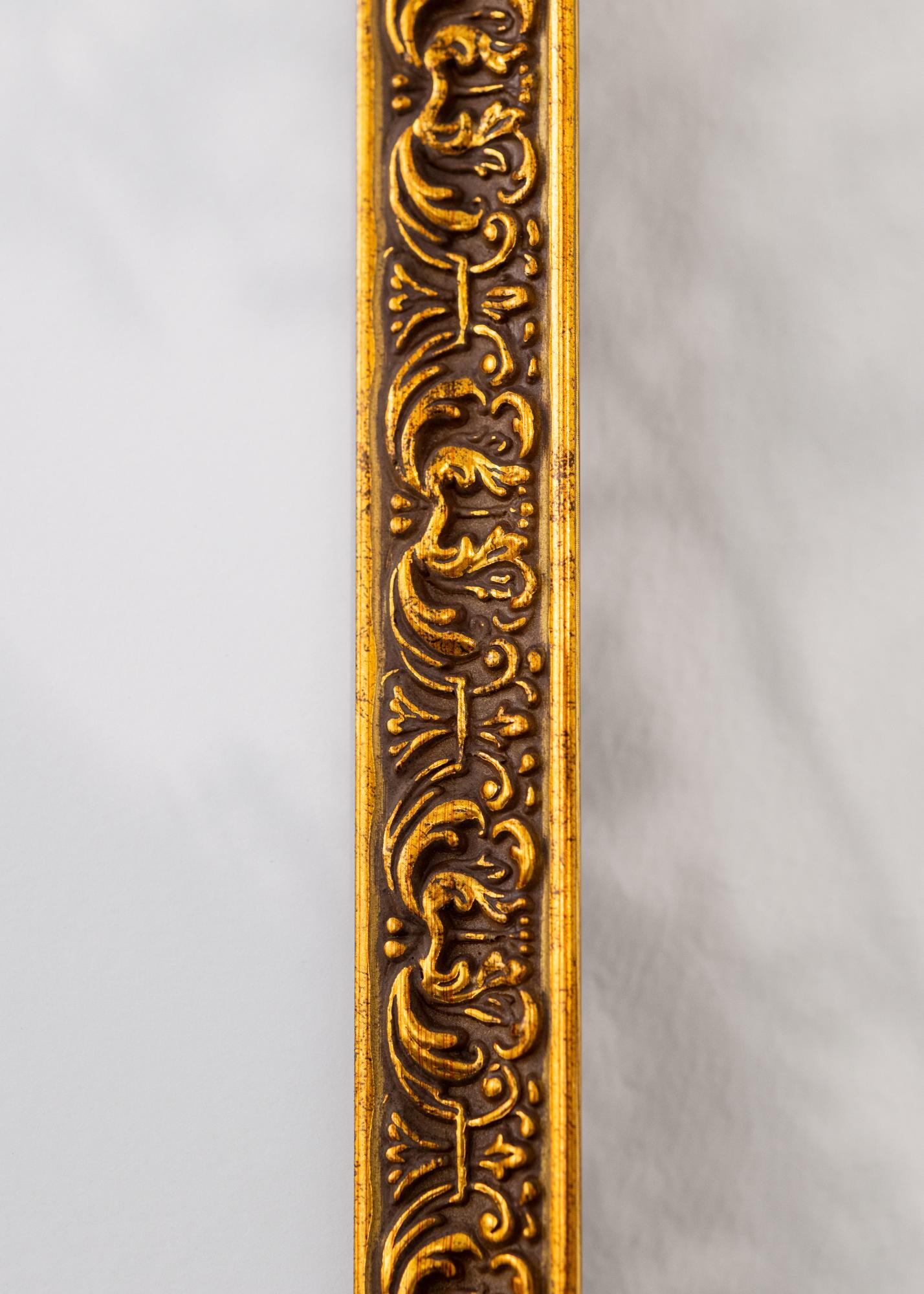 This elegant gold photo frame is a perfect combination of tradition and luxury. With its decorative, ornamented details and antique gold finish, it exudes a sense of timeless beauty. The frame is ideal for highlighting portraits, artworks, or historical motifs, and its classic design makes it an excellent choice for any home.