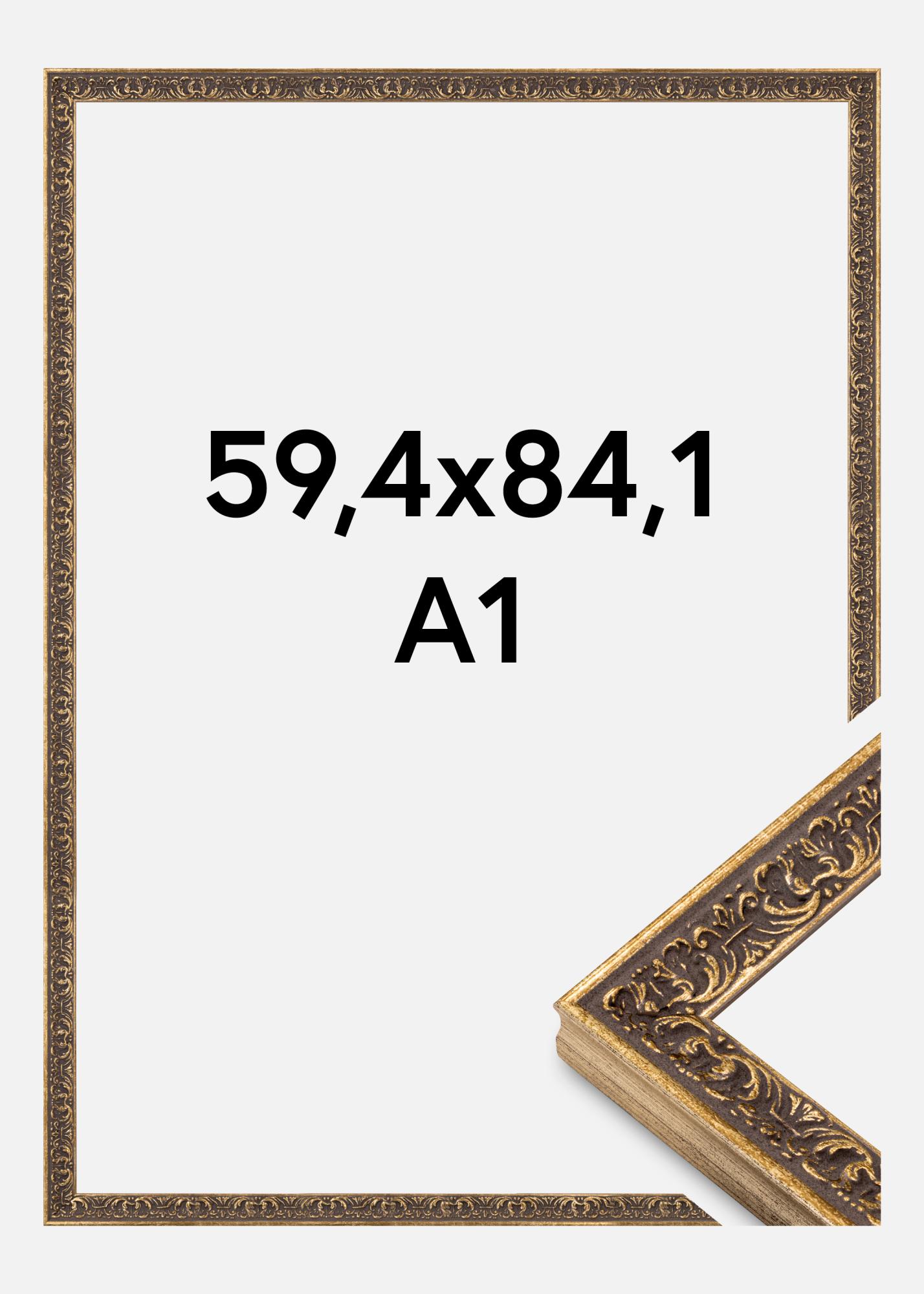 This elegant photo frame in the size 59.4x84 cm is a perfect combination of classic design and modern functionality. With its antique-inspired style and beautifully detailed ornamentation in a grayish hue with gold-colored touches, it provides a vintage feel that enhances any room. This photo frame is ideal for creating a sophisticated atmosphere in your home.