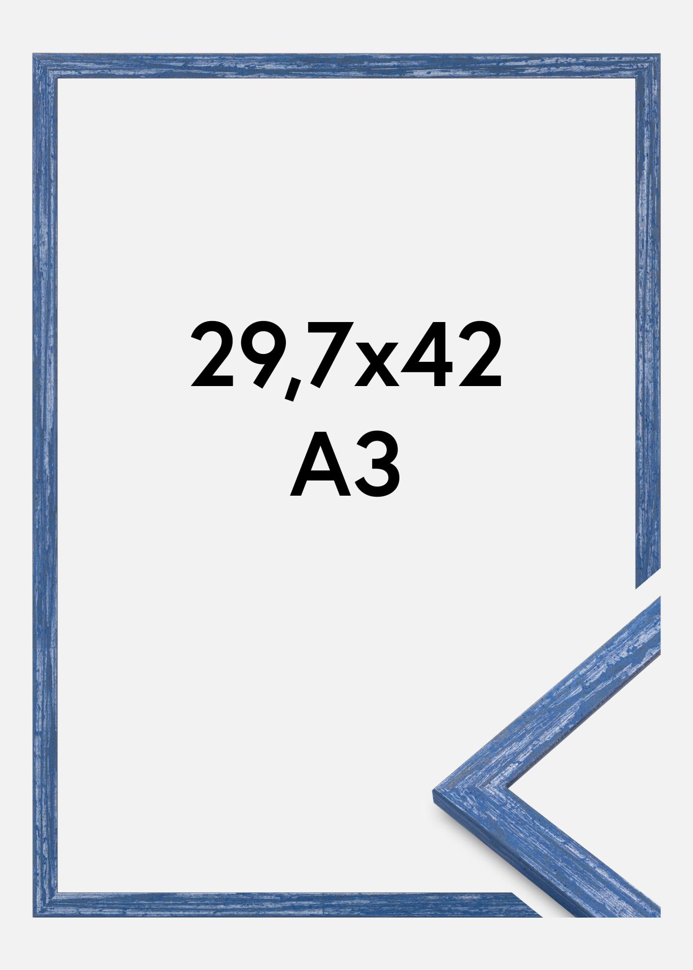 This beautiful photo frame in the size 29.7x42 cm is a perfect combination of style and functionality. With its vibrant blue color and lightly weathered finish, it adds a rustic and charming feel to any room. The wood texture subtly shows through the blue color, creating a lively and natural expression that fits excellently in both modern and bohemian interiors.