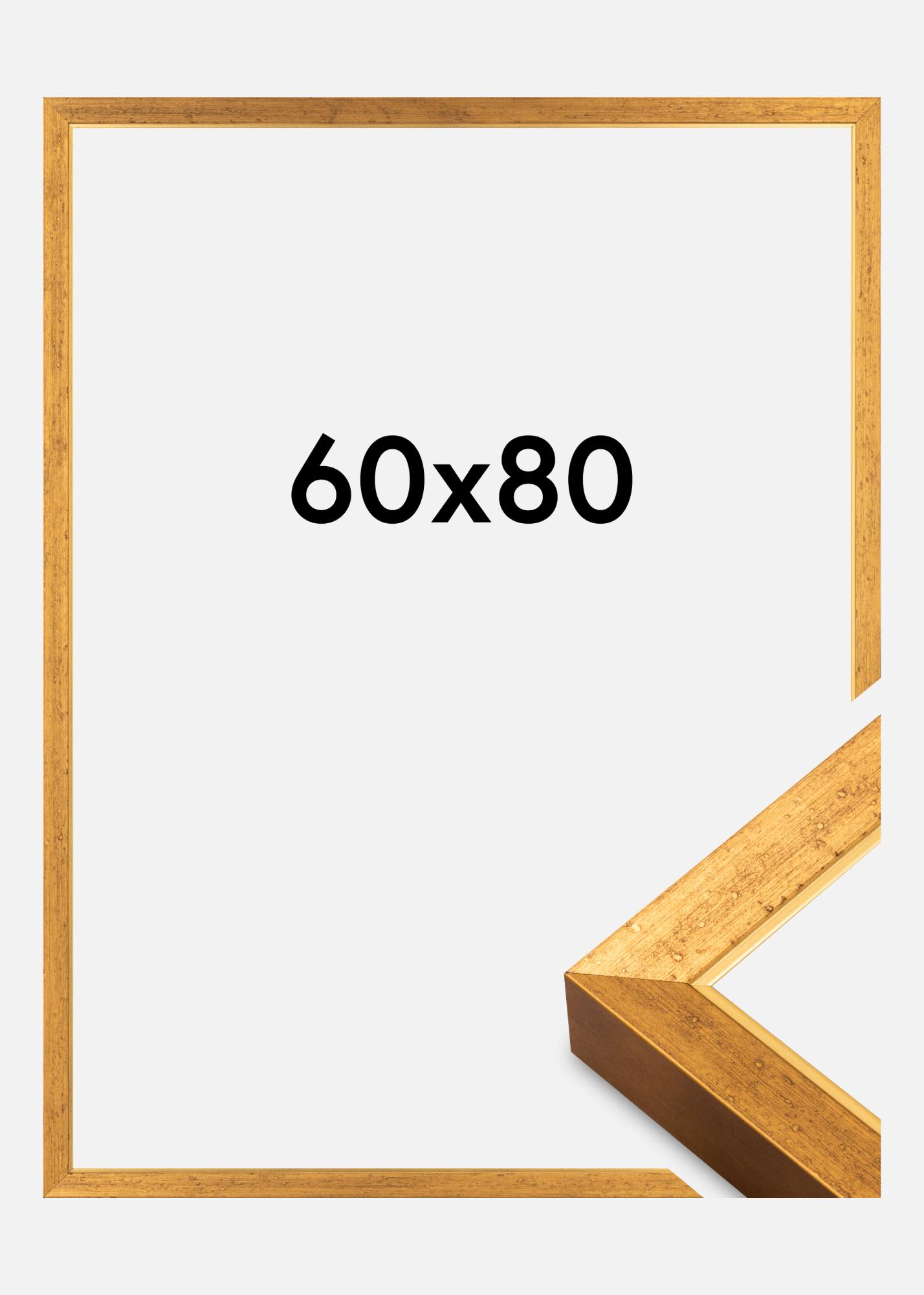 Transform your walls with this elegant photo frame in a warm gold tone, perfect for motifs sized 60x80 cm. This photo frame is made of wood and has a subtle texture with a slight antique feel, giving it a sophisticated and timeless look. With a frame moulding measuring 23 mm in width and a depth of 33 mm, it offers a smooth and slim profile that suits both classic and modern interior styles.