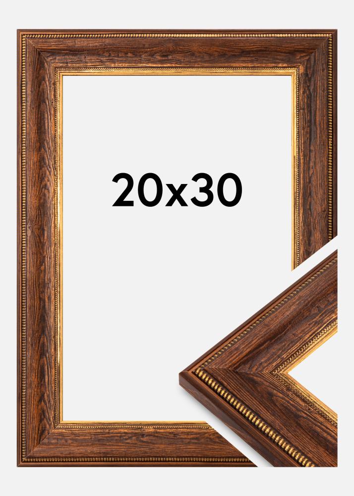 This elegant photo frame in the size 20x30 cm is a perfect combination of rustic charm and classic elegance. Made of high-quality wood, the frame has a deep brown color with decorative gold details along the inner edge. The wood texture is clearly visible and gives a warm and natural feel, while the gold-colored accents add a sophisticated touch that fits excellently in traditional and vintage-inspired interiors.