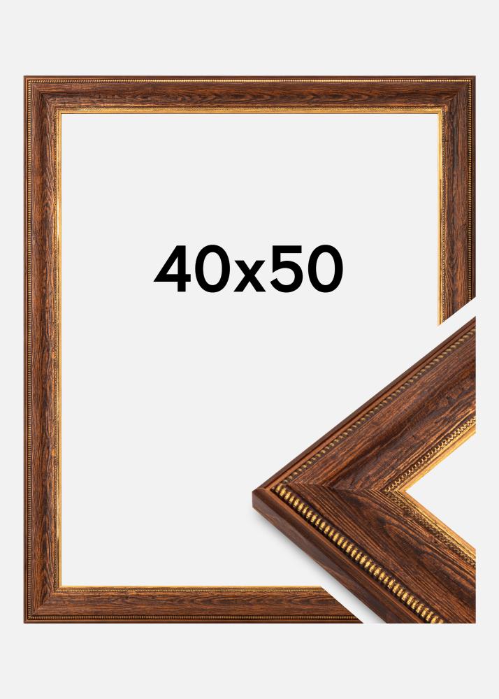 This elegant photo frame in the size 40x50 cm is a perfect combination of rustic charm and classic elegance. Made of high-quality wood, the frame has a deep and rich brown color that enhances the natural wood grain. The decorative gold details along the inner edge provide a sophisticated touch that complements both traditional and vintage-inspired interiors.