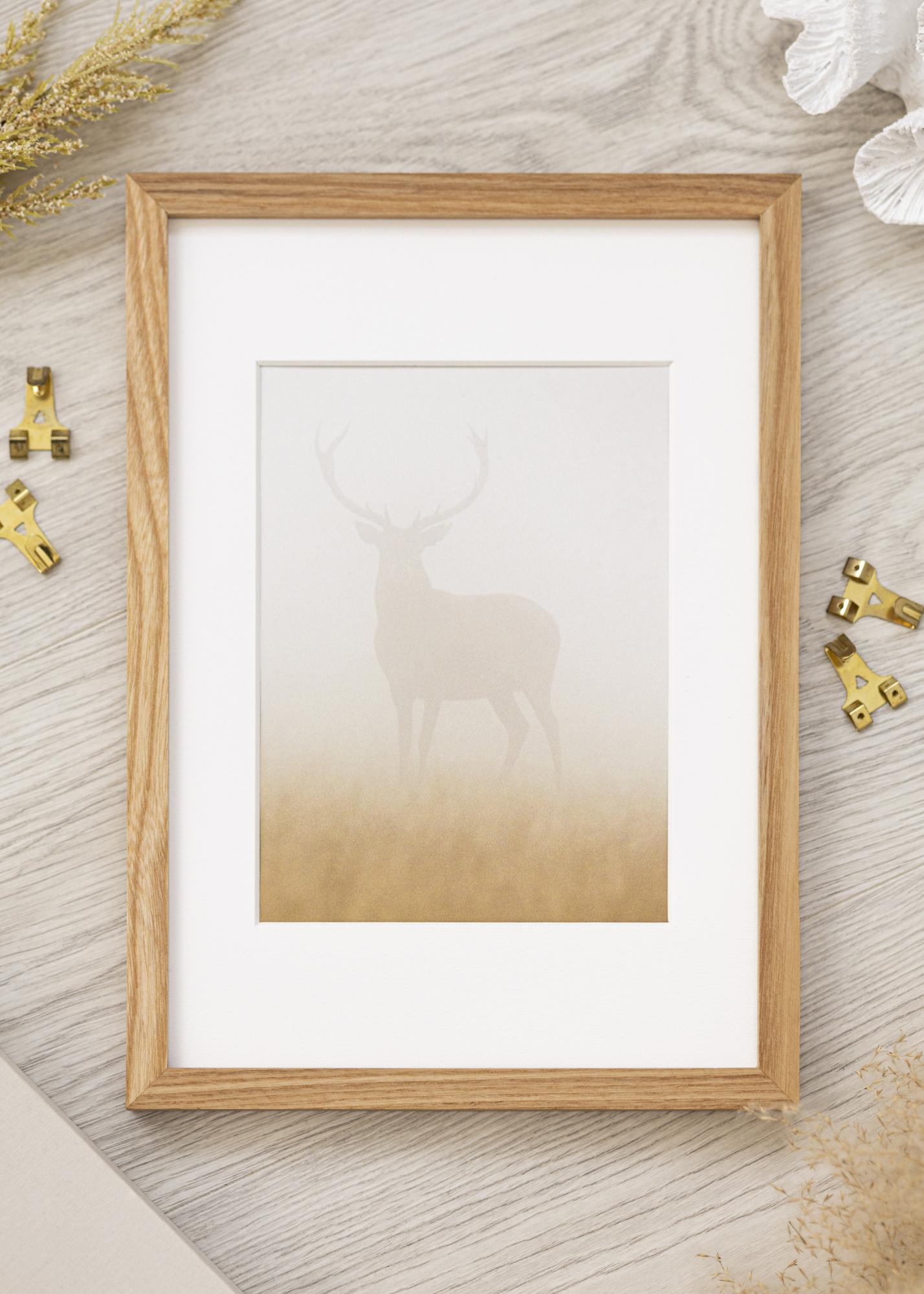 This elegant photo frame in solid oak is a perfect combination of style and functionality. With its natural and warm wood finish, it provides a timeless feel that suits both modern and traditional interiors. The frame size is 42x59.4 cm, making it ideal for highlighting your favorite motifs in A2 format. The beautiful grain of the oak gives each frame a unique character, making it an excellent choice for creating a harmonious atmosphere in your home.