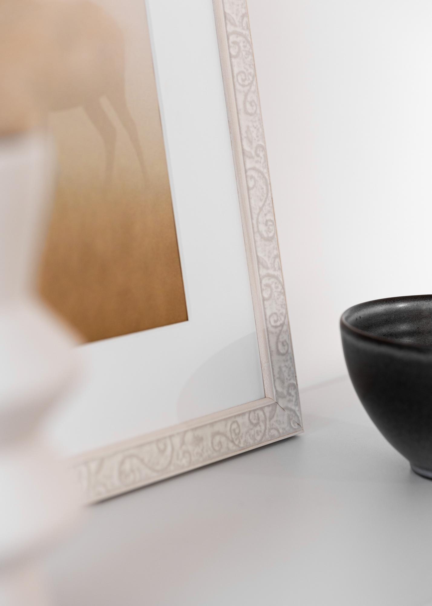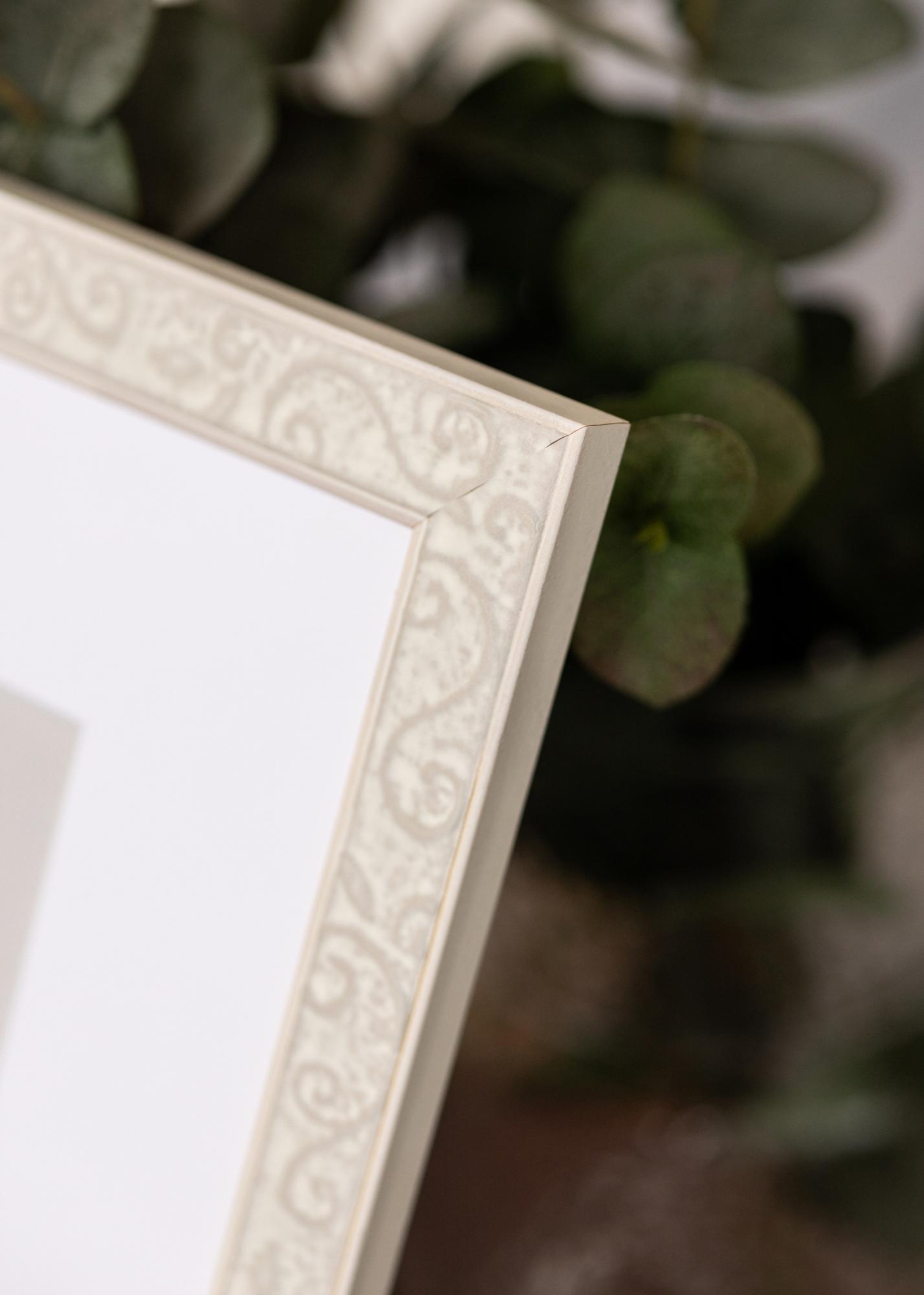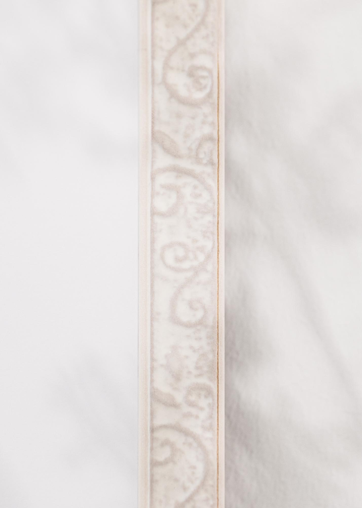 This beautiful photo frame in light beige is a perfect combination of elegance and functionality. With a subtle, ornamental pattern along the edges, it provides a stylish and romantic feel that fits excellently in both classic and country-style interiors. The frame is made of wood and features a 25 mm wide frame strip and a depth of 14 mm, giving it a solid and substantial feel.