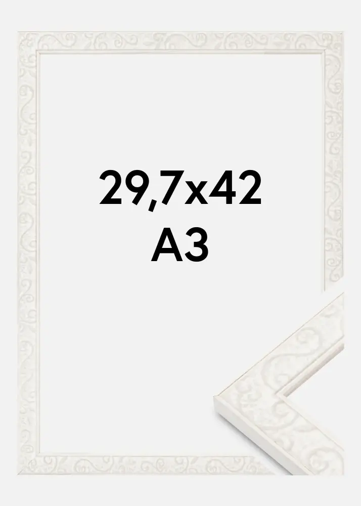 Transform your memories into artworks with this beautiful photo frame in the size 29.7x42 cm (A3). This elegant photo frame is made of wood and has a white color that blends into most interior styles. With a frame profile measuring 25 mm in width and a depth of 14 mm, it offers a stable and robust framing for your favorite motifs.