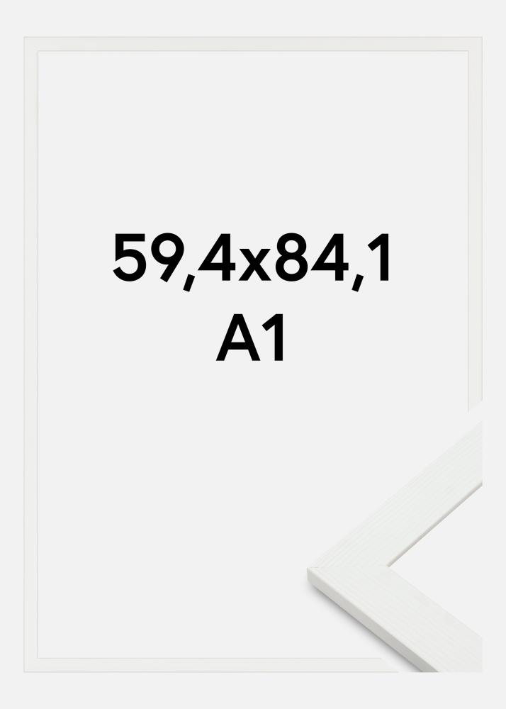 Discover a stylish and bright photo frame that gives your pictures an elegant framing. This photo frame is designed to fit images sized 59.4x84 cm (A1), making it ideal for larger artworks or photographs. With its subtle wood texture and white tone, it easily blends into various interior styles while showcasing your pictures in a tasteful manner.
